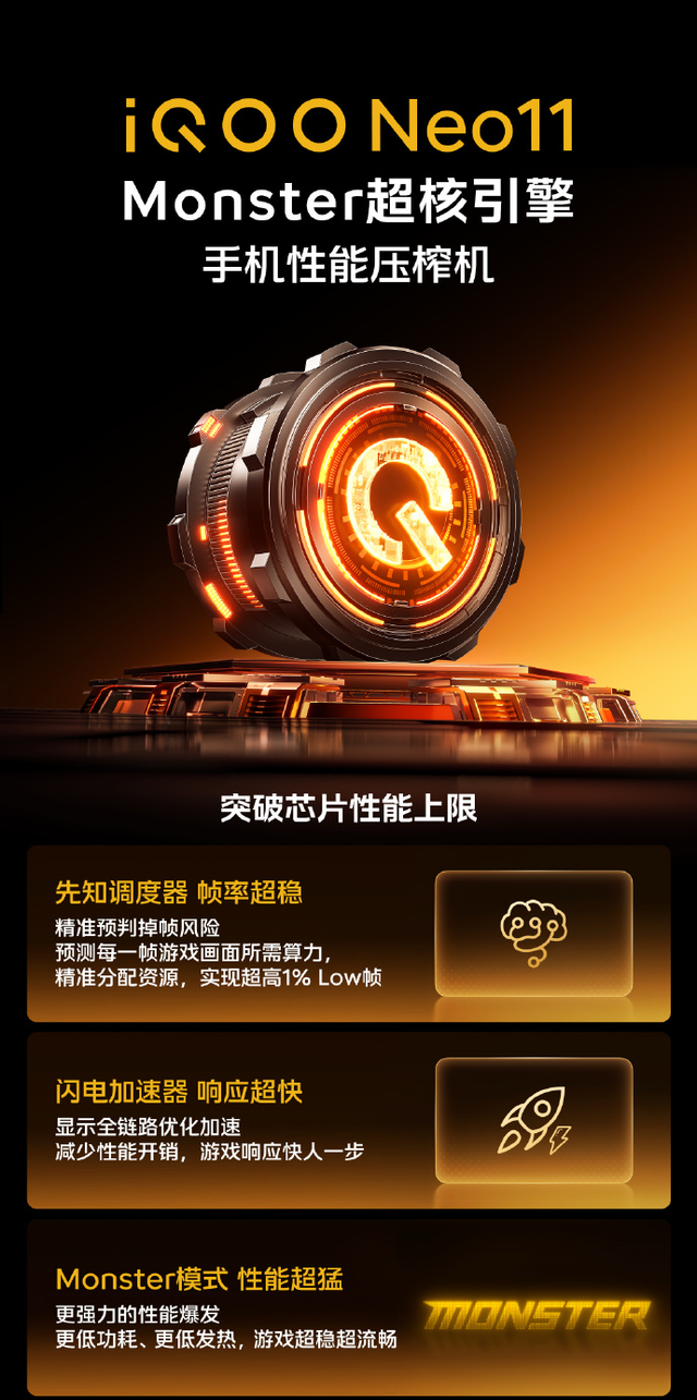高性能手机在重载场景下的发热问题一直是用户关注的焦点Neo11凭借旗舰级的8K冰穹VC散热,确保在运行大型游戏、进行超分超帧等高负荷操作时,手机也能坚持更久的高能时刻配合iQOO 15同款 Monster超核引擎,Neo11在性能爆发的同时,依然能够有效控制功耗和发热。