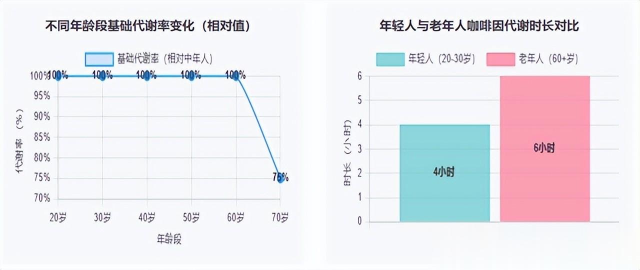 肝脏里分咖啡因的“清道夫”CYP1A2随着年龄慢慢懒了,同样一杯咖啡,老年人身体里呆得比年轻人久,也更容易累积。也就是说,像茶叶中的咖啡碱和类似成分对老年人的刺激性更强、持续时间更长,因为肝脏“代谢器”本身不如年轻时灵敏。