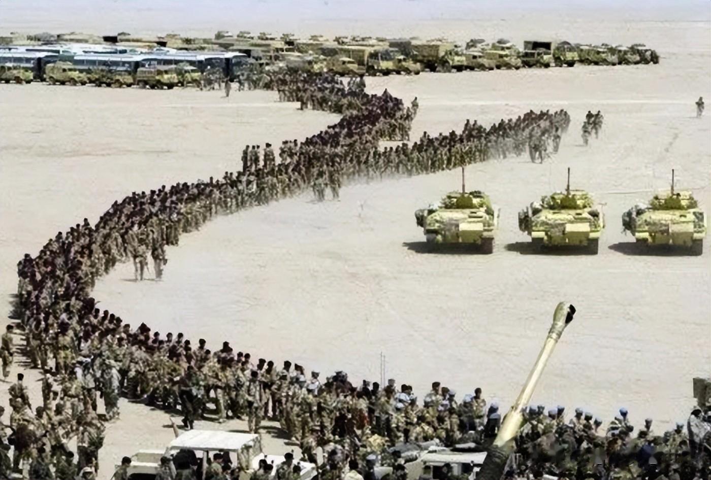 第一次海湾战争,美国打萨达姆,准备了整整半年。从1990年8月伊拉克入侵科威特,到1991年1月沙漠风暴正式开打,中间五个多月,美国干了什么?疯狂往中东运兵、运装备、运弹药。