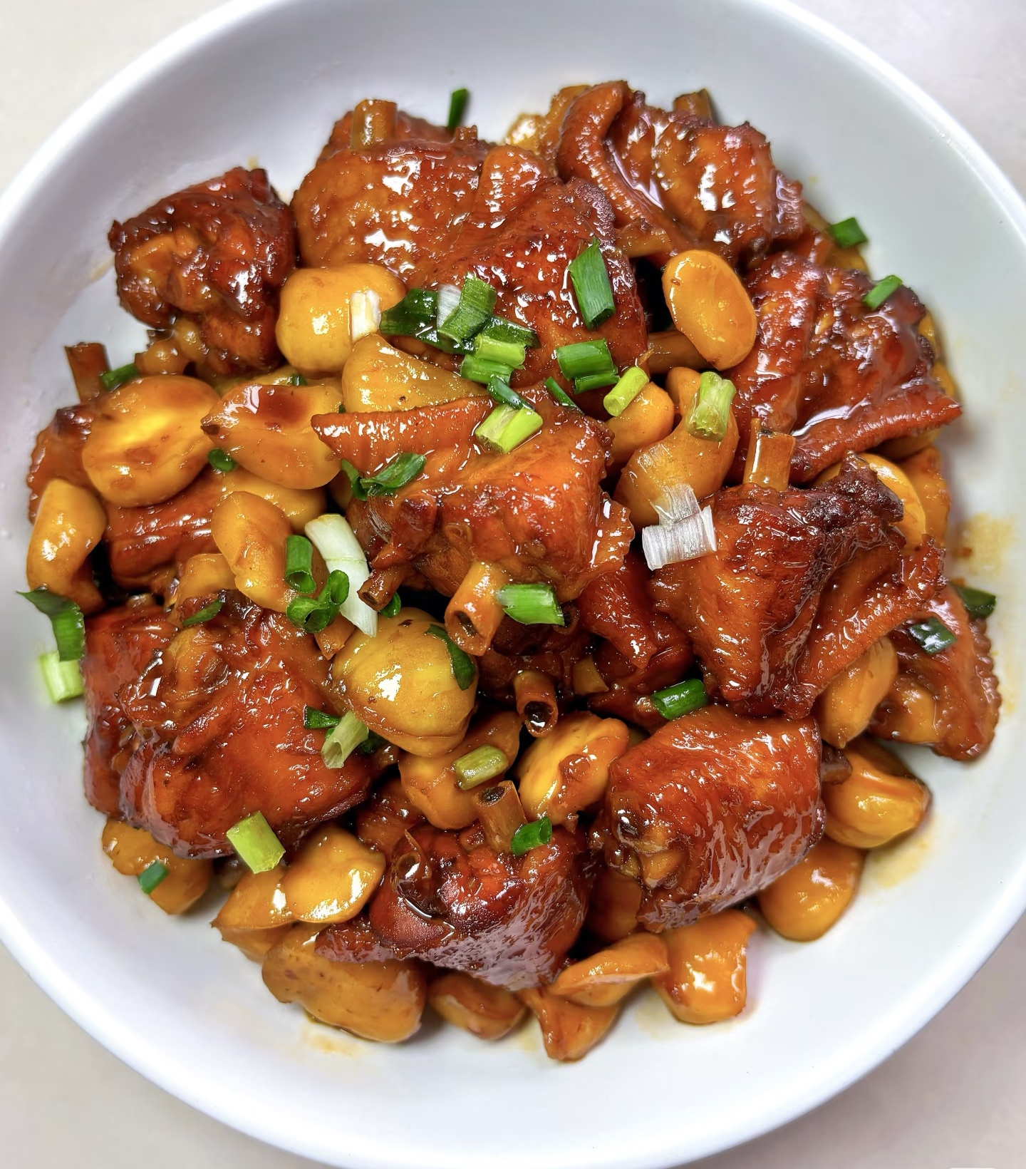 板栗烧鸡,板栗香甜粉糯,鸡肉鲜嫩多汁,两者搭配在一起,味道超赞。