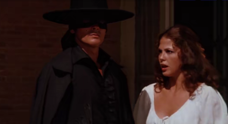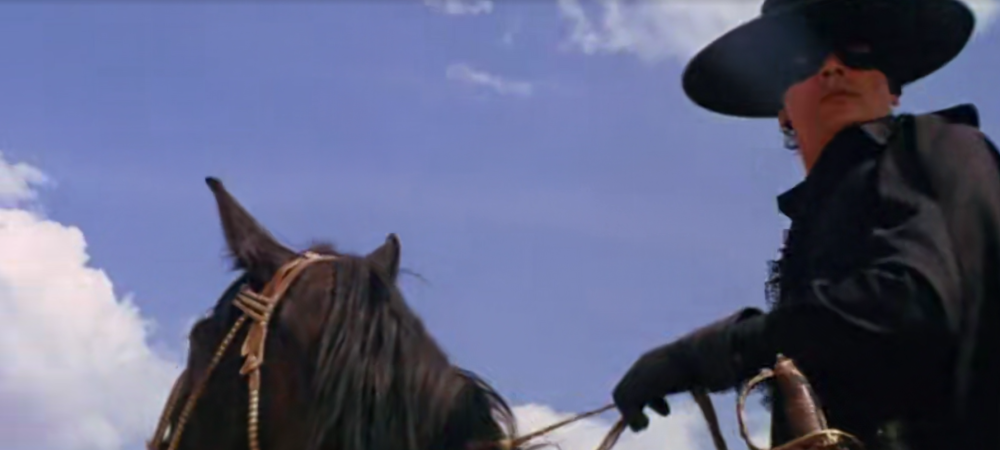 迭戈在总督位置上,表现得像个任人摆布的提线木偶,身旁为所欲为的上校,也以为可以随意地摆布他。在一次微服私访的过程中,迭戈看到贵族们的军队和不法商人一同鱼肉百姓,为民请命的教士,被以煽动叛乱的罪名逮捕起来,并被粗暴地撕开上衣,施以鞭刑。就在这个时候,迭戈戴上黑面罩,穿上黑披风,骑着马,以佐罗的形象开始出现,佐罗凭借着高超的剑术与娴熟的格斗技巧,击败了殖民地的卫兵,并且对这些贪官污吏还之以同样的刑罚。