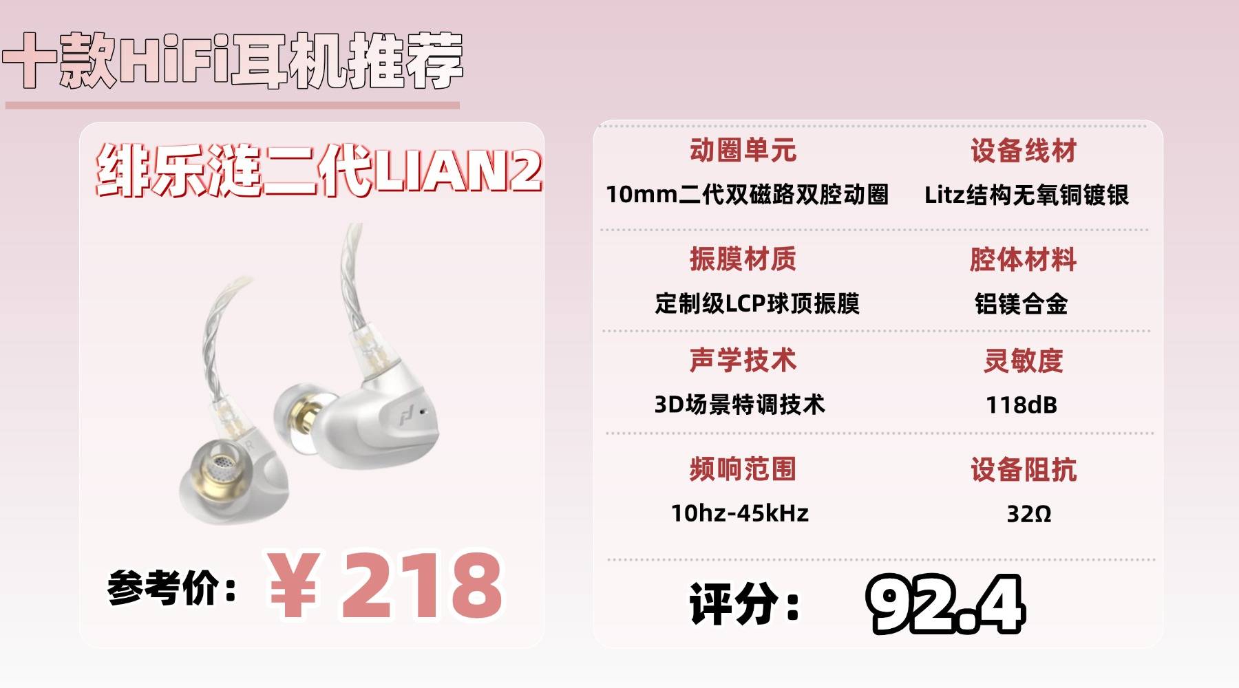 LIA N 2 采用第二代 10mm 双磁路双腔动圈方案,配合定制 LCP 球顶振膜,声音整体偏向厚实耐听。中低频量感相对充裕,人声位置略靠前,氛围感比上一代更明显,低频下潜和结实度都有所加强,听流行和人声类曲目时更容易带出情绪。高频在部分频段有一定亮度提升,打击乐边缘更清晰,泛音也更活跃,但在音量较大时,对高频敏感的人可能会感觉略有刺激。