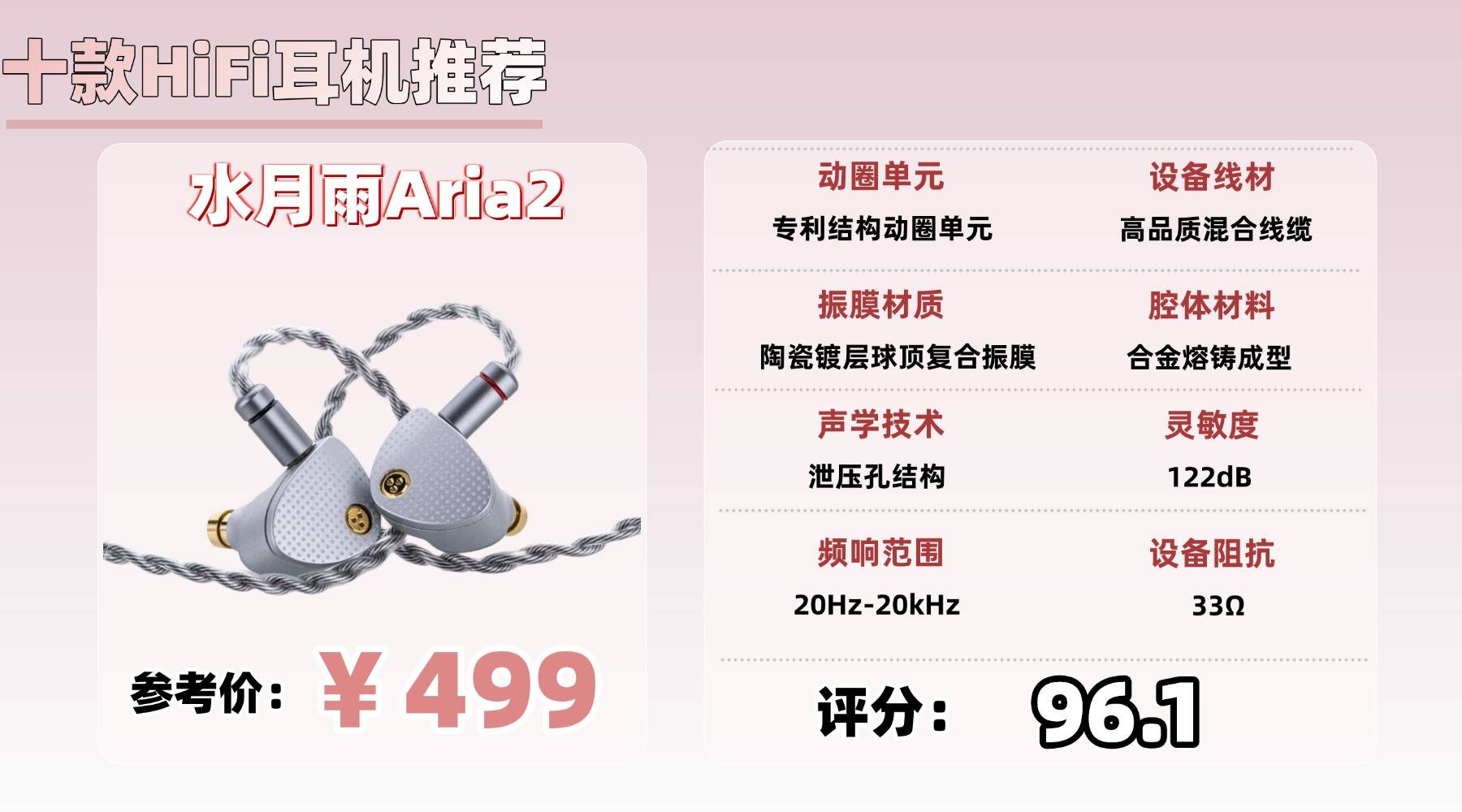 Ari a2 延续了水月雨一贯偏耐听的调校思路,内部采用专利动圈结构与内外复合磁路设计,配合黄铜独立声腔和陶瓷镀层复合振膜,声音走向温润自然。中频厚度适中,人声位置不靠前,听起来松弛耐听;高频延展柔顺,基本不会出现刺激感;低频弹性保留得较为克制,更强调自然衔接而非量感堆叠。