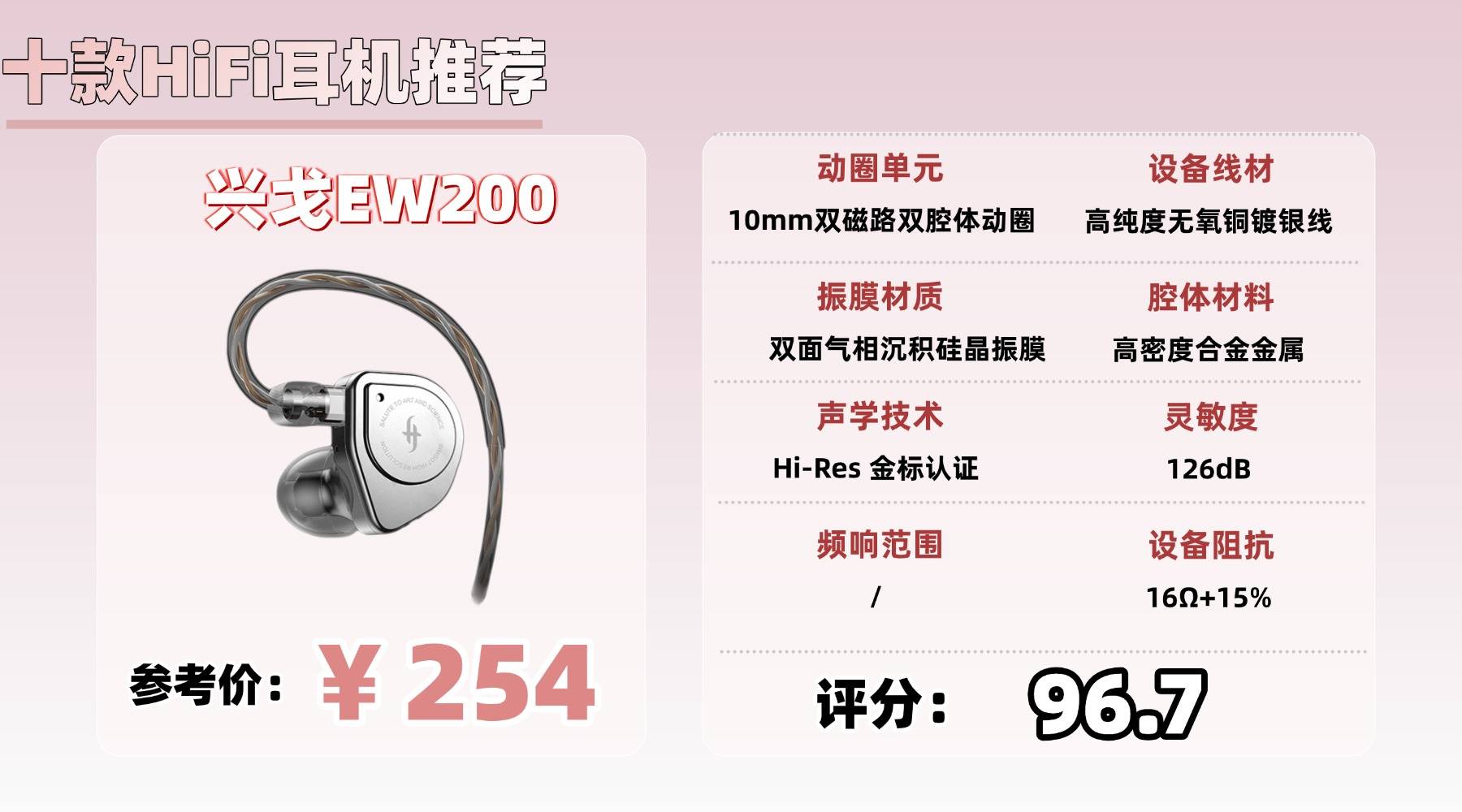 E W 20 0 的声音风格偏解析走向,整体频响覆盖宽广,高频延伸感明显,中频清晰度尚可,声音结像相对集中。双磁路动圈在动态表现上有一定优势,音量推动较为轻松。但在部分电脑接口直连使用时,存在规律性底噪现象,推测与接地或供电环境有关,对安静环境下的听感会有一定影响。