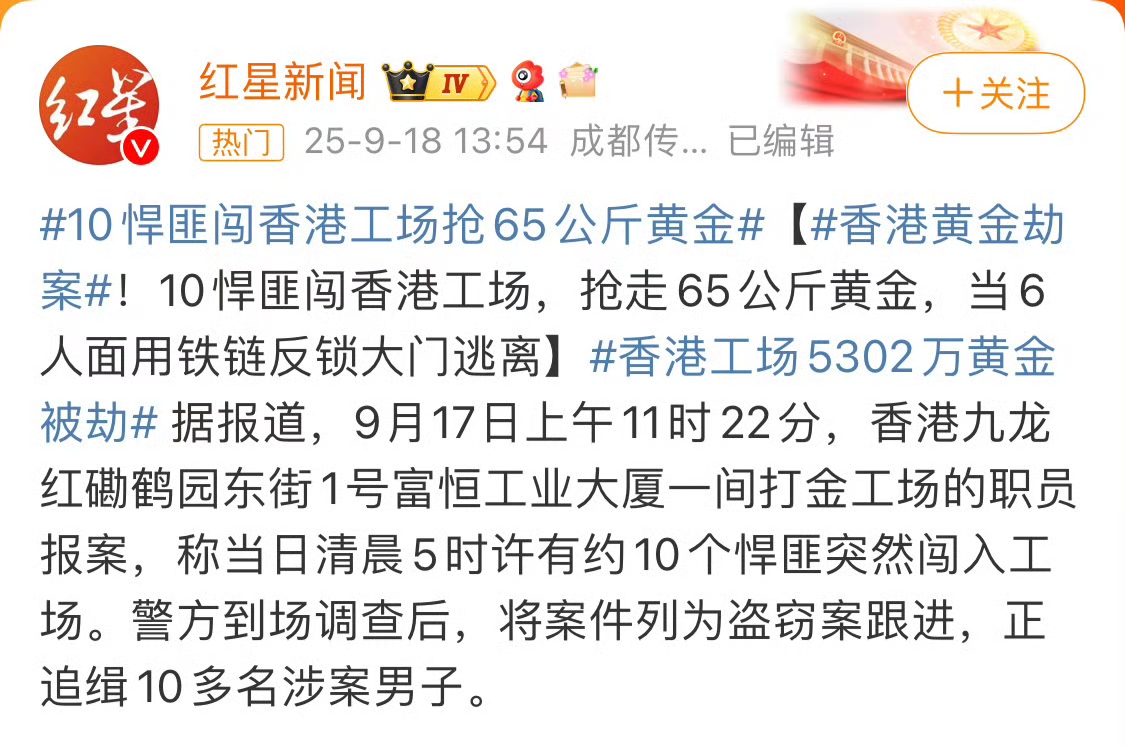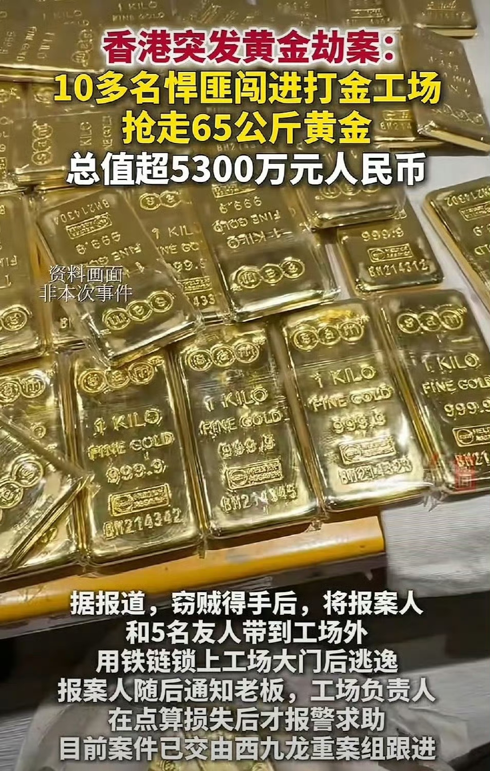这起案件并非香港首次发生黄金劫案。早在2016年就发生过巨额金条抢劫案。业内人士指出,黄金运输及加工环节的安保漏洞,早已成为不法分子的“财富密码”。警方呼吁金融及贵金属行业从业者加强安保,西九龙总区警司直言:“任何可疑人员或车辆接近工场,都应立即报警。”
