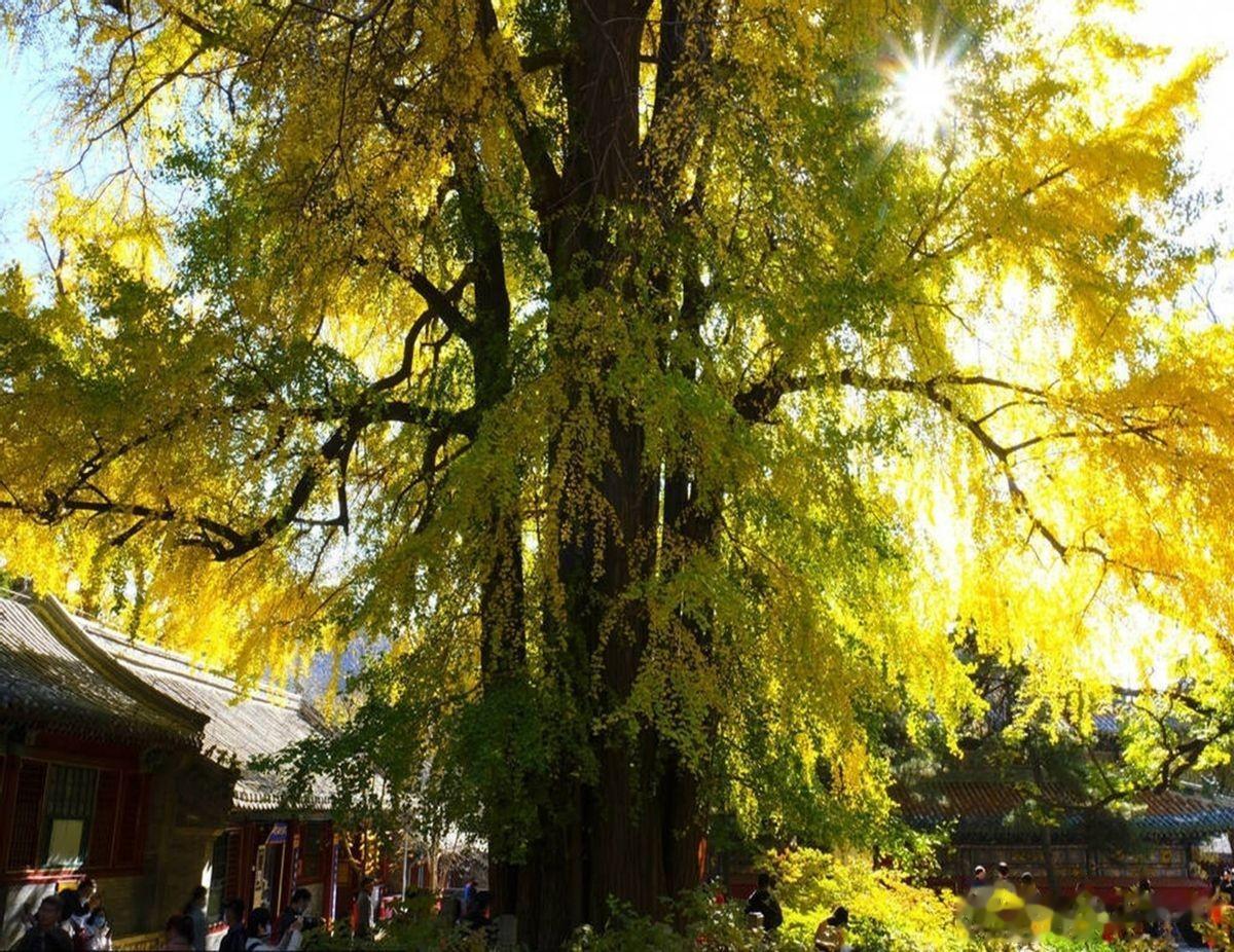 多年里,因为基本上都是春节假期游览潭柘寺,没有见过帝王树有树叶时的样子。为此,某一年的夏天,我们专门去了一趟潭柘寺,看到了枝茂叶盛时的帝王树。