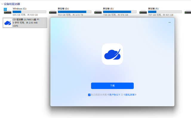 操作到这里,基本上就能和常见的NAS实现完全一样的功能了。我觉得梵想云和飞牛最大的区别就是它不需要刷系统,而且依靠一个硬件和一个APP实现了内嵌的NAS系统,在电脑中开辟了一块区域用作NAS使用。便捷性大大提升,门槛也非常低,让任意小白用户都能体验到NAS的乐趣。