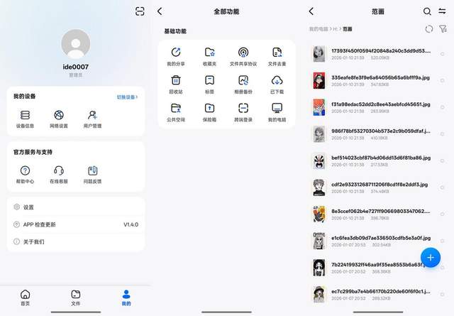 接下来的操作如果大家接触过各种NAS就都会比较熟悉了,用户可以通过文件管理自由往梵想云里面上传和下载文件,也可以放一些电影资源,影视模块会自动生成影视墙,方便看电影。而相册也是可以方便的备份手机相册。