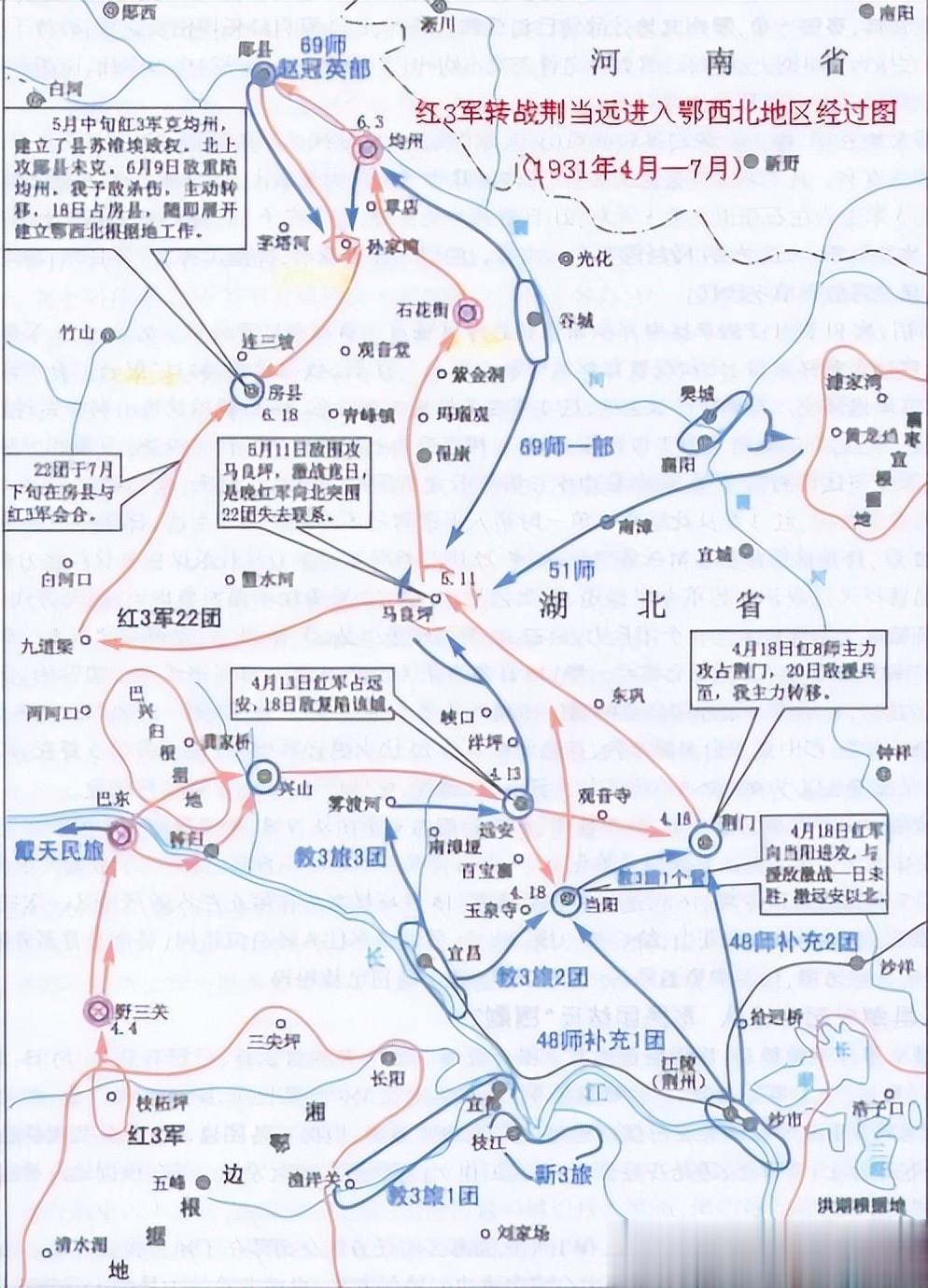 远安刚刚得手,红三军马上以这为大本营,开始兵分两路,以扩大战果。一路去打当阳,一路去打荆门。