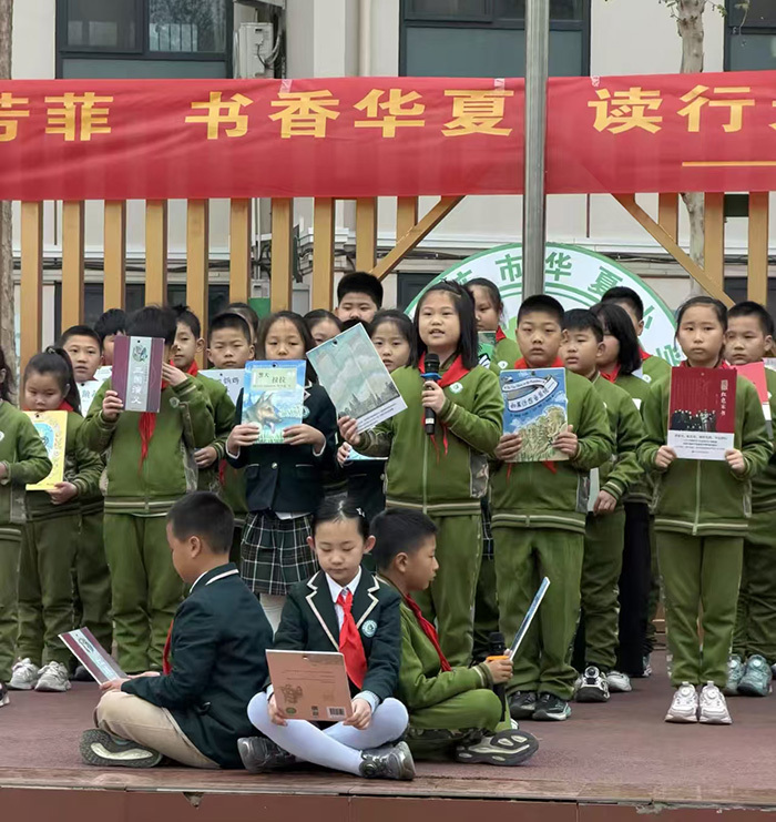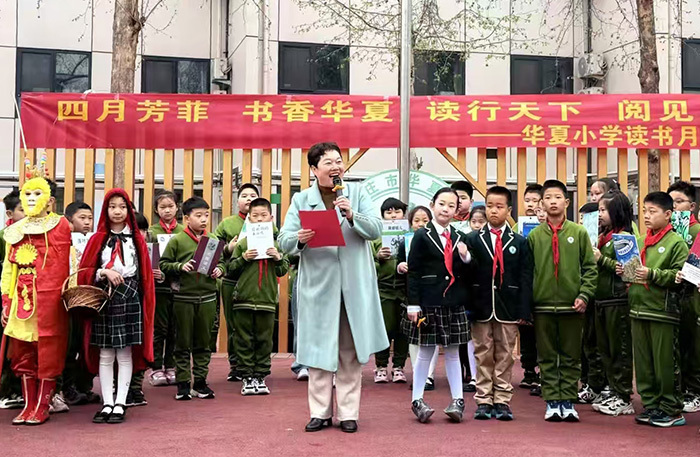 春雨无声,石家庄市华夏小学弥漫着浪漫与梦幻色彩,散发着馥郁的书香与童话的芬芳。一场别开生面的读书月开幕式,为孩子们打开了一扇通往神奇阅读世界的大门,他们鲜衣怒马,拥抱书的国度。李素娟校长走进孩子们中间,带领全体师生共同唱响读书口号——“四月芳菲、书香华夏,书行天下,阅见未来”。铿锵有力的声音回荡在校园上空,也深深烙印在每一个孩子心间。