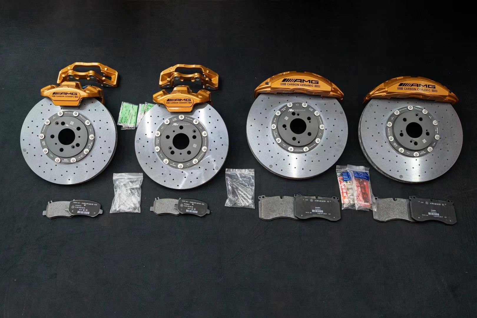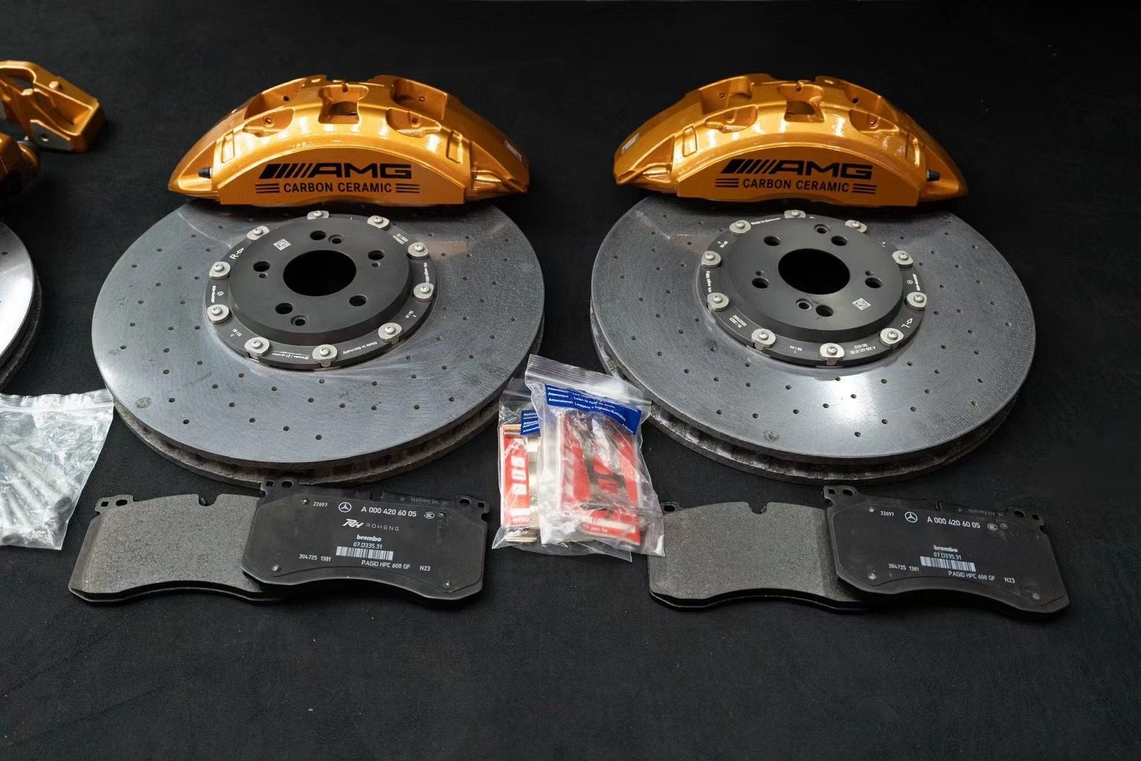二、升级核心:两大方案,覆盖性能与耐用需求针对不同车型与需求,提供 “原厂碳陶瓷刹车” 与 “AMG 前六后一套件” 两类升级选择,兼顾性能、质感与实用性: