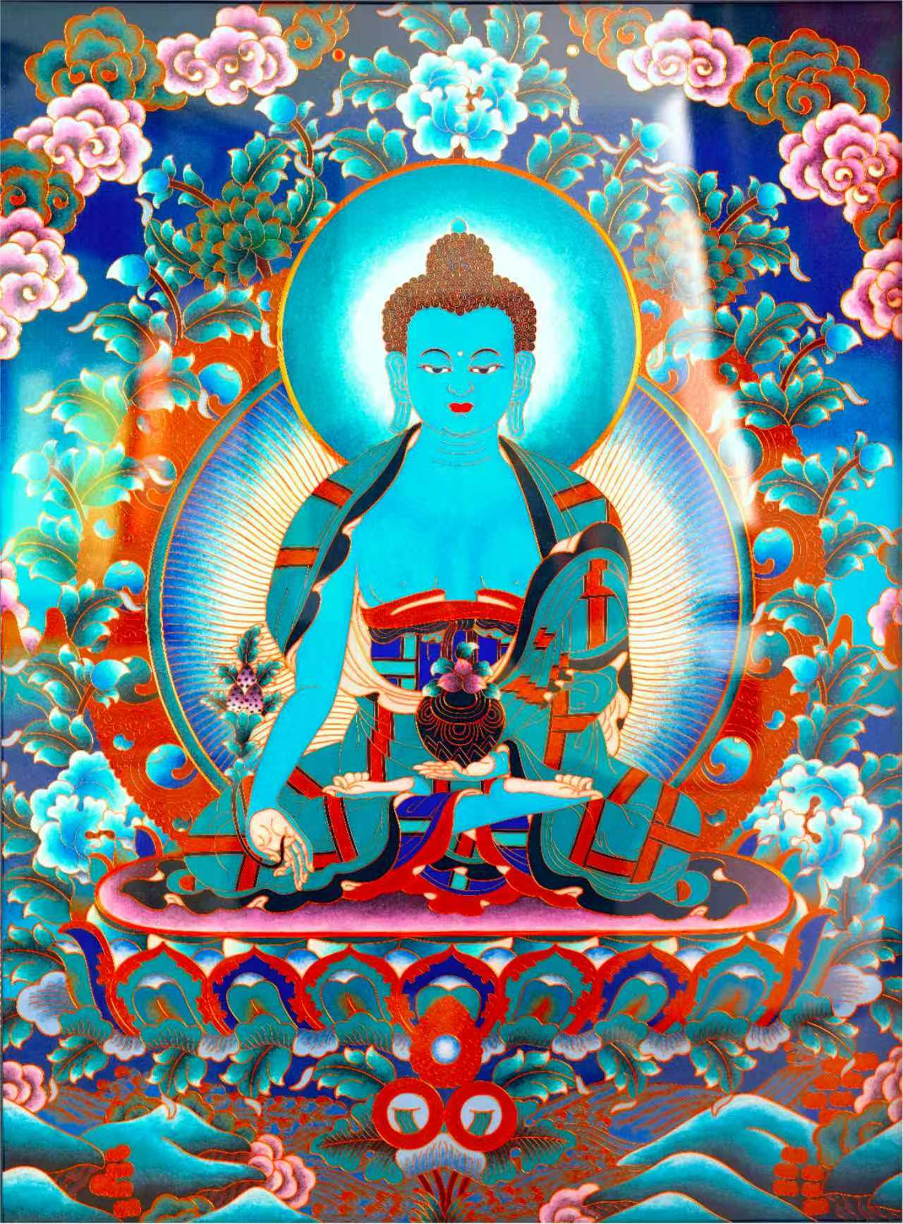 当代打工人的精神救赎找到了!天虞非遗的药师佛掐丝唐卡,这抹治愈蓝直接把 “身心安和” 焊在墙上,加班 emo 看一眼就回血!