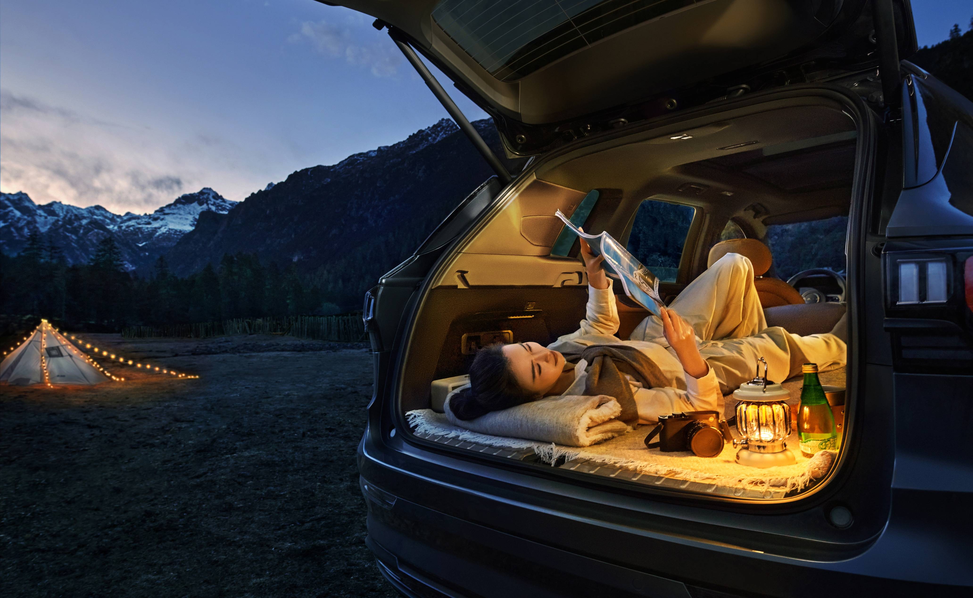 人们向往探享世界的美好和自由,也追求旅途中每一刻的宽适与舒适。领克09 EM-P四驱Max大五座空间升级,拥有同级最宽二排空间,座椅横向宽度为1366mm,坐垫深度540mm,为同级最大,腿部最大空间1130mm,3人乘坐轻松自在,长途久坐也不疲累。二排座椅立起后,后备箱空间达691L,足以装下全家出行所需的行李和露营装备。而当二排座椅放倒,后备箱空间扩容至1522L,为同级最大,铺上床垫秒变2米“大床”,在没有天花板的户外小憩,从容更惬意。