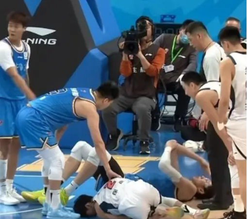 可万万没想到的是,除了输球之外,广东男篮居然在这场比赛中又遭重创。他们的核心后卫徐杰在一次退防时,被失去平衡而摔倒的周琦压伤了腿。