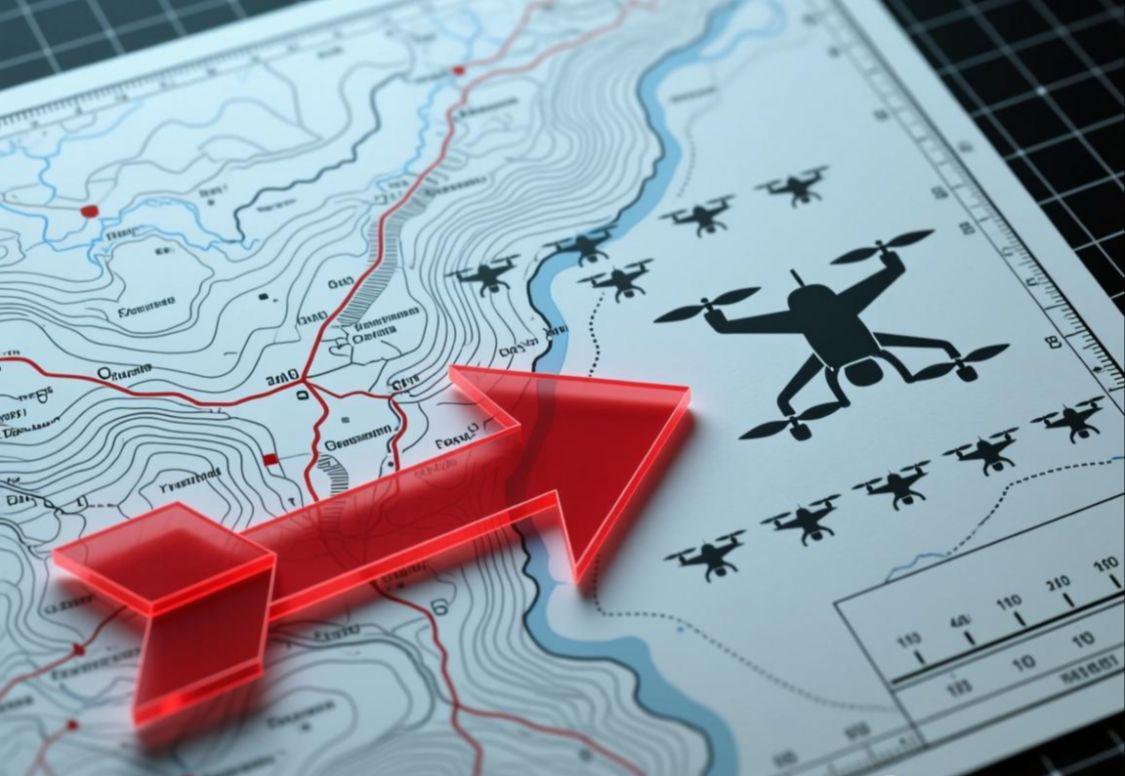 配图说明:一张高清的军事地图局部截图,用红色箭头标注出主要空袭方向,并在旁边配上一个小图标表示无人机群,直观展示当天的袭击规模。