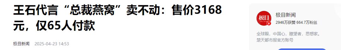极目新闻-王石代言“总裁燕窝”卖不动:售价3168元,仅65人付款