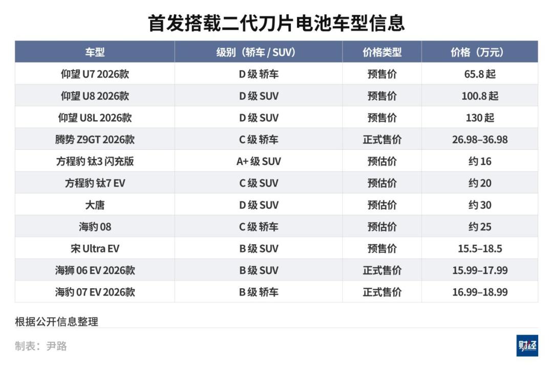 因此,第二代刀片电池的发布,是比亚迪建设利润护城河的关键节点。观察此次首发搭载二代刀片电池的11款车型信息,可以发现明显的“阶梯属性”,比亚迪不再无差别地将新技术用于所有车型。