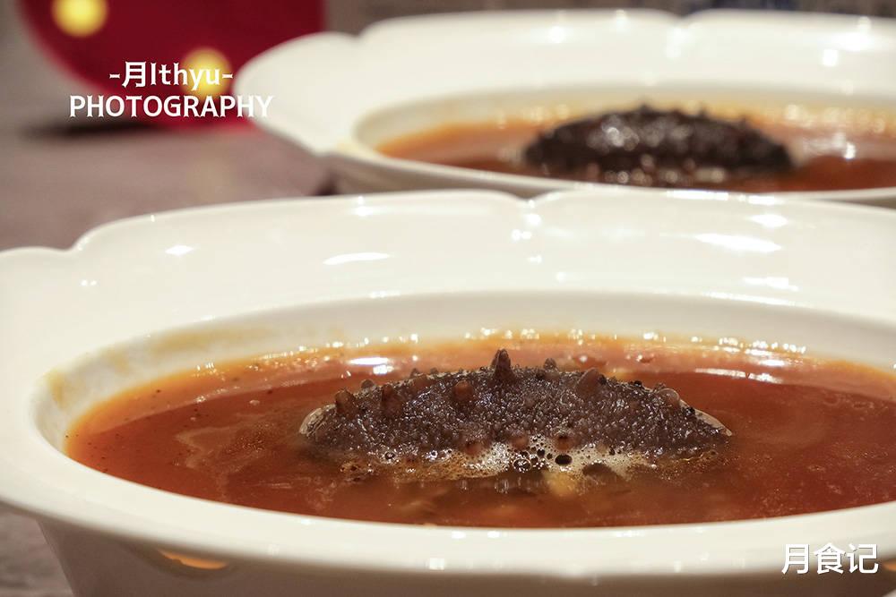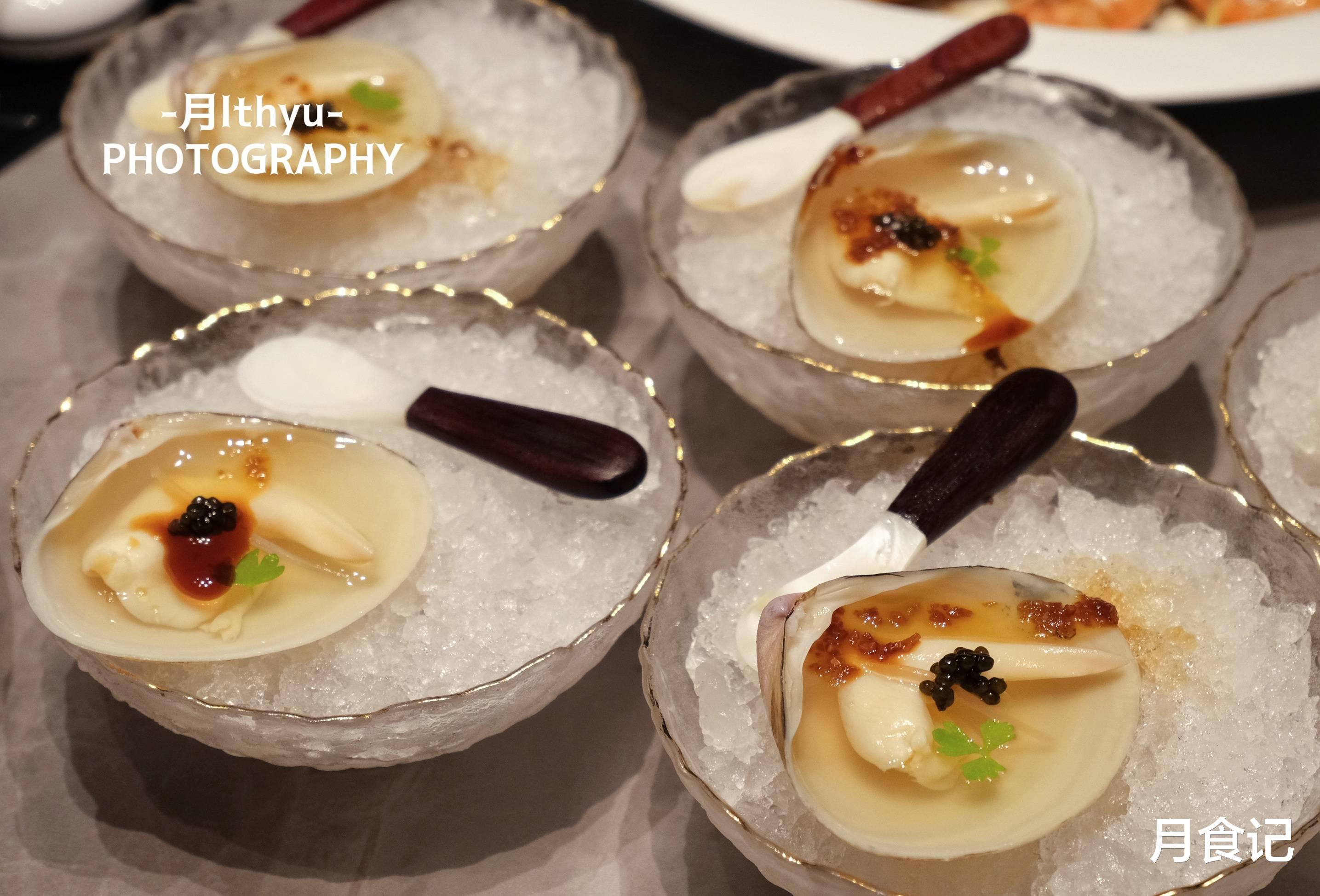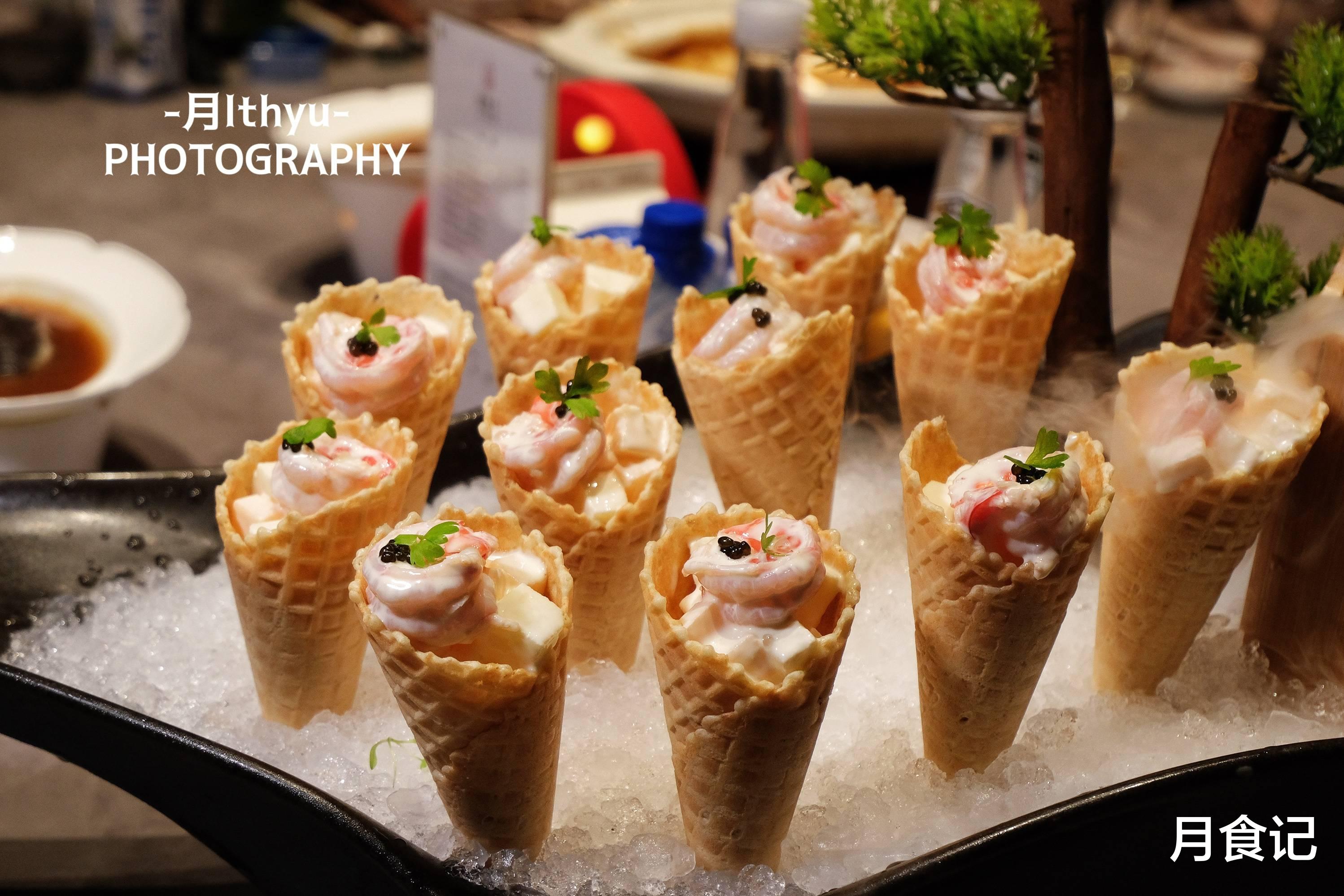 安格斯牛肉 :搭配着鸡枞菌,鲜嫩可口,牛肉嫩而不柴,香气扑鼻。黑松露麦仁扣辽参:慢火加热,搭配黑松露的香气,越吃越鲜。鱼子酱虾球水果沙拉,装在甜筒里可可爱爱,吃起来清爽可口。