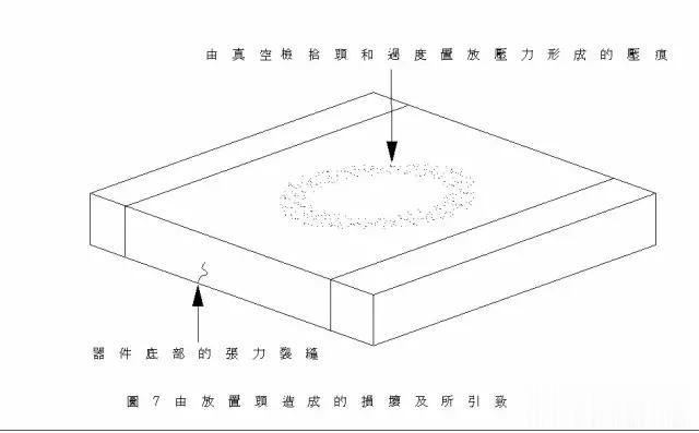 当进行零件的取放尤其是SMT阶段零件取放时,取放的定中爪因为磨损、对位不准确,倾斜等造成的。由定中爪集中起来的压力,会造成很大的压力或切断率,继而形成破裂点。
