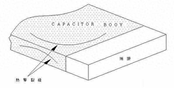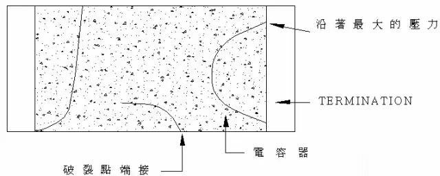 第二种裂缝也会由裸露在外的中央部份,或陶瓷/端接界面的下部开始,并随温度的转变,或于组装进行时,顺着扭曲而蔓延开来(见图4)。