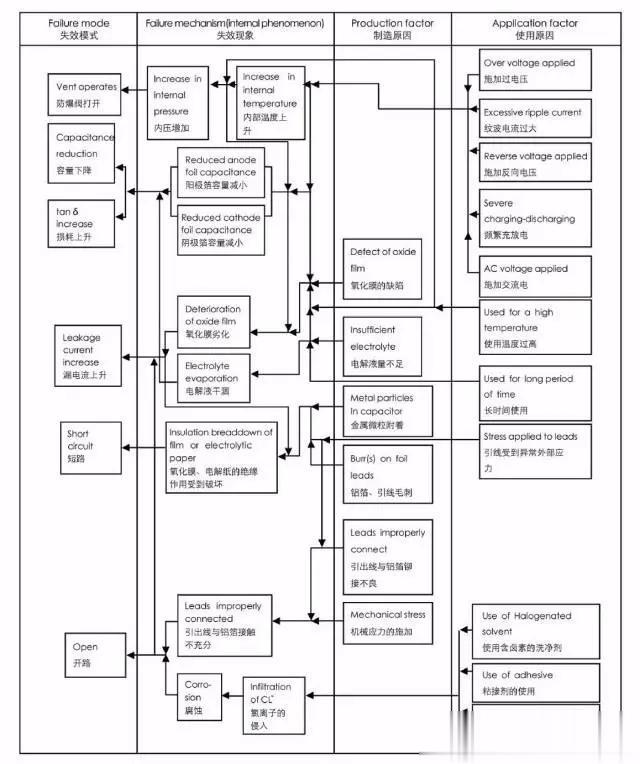 铝电解电容是电容中非常常见的一种。铝电解电容用途广泛:滤波作用;旁路作用;耦合作用;冲击波吸收;杂音消除;移相;降压等等。对于铝电解电容,常见的电性能测试包括:电容量,损耗角正切,漏电流,额定工作电压,阻抗等等。在失效分析案件中,关于铝电解电容的失效案件不少,那么常见的铝电解电容的失效机理有哪些呢?