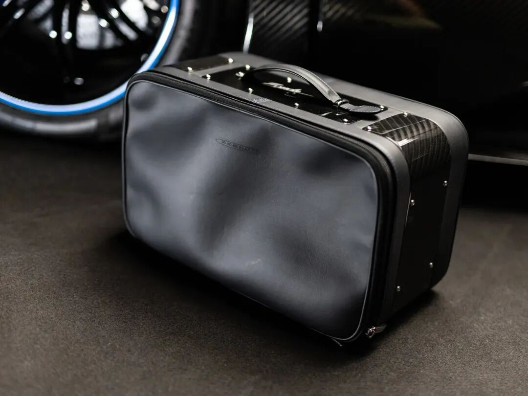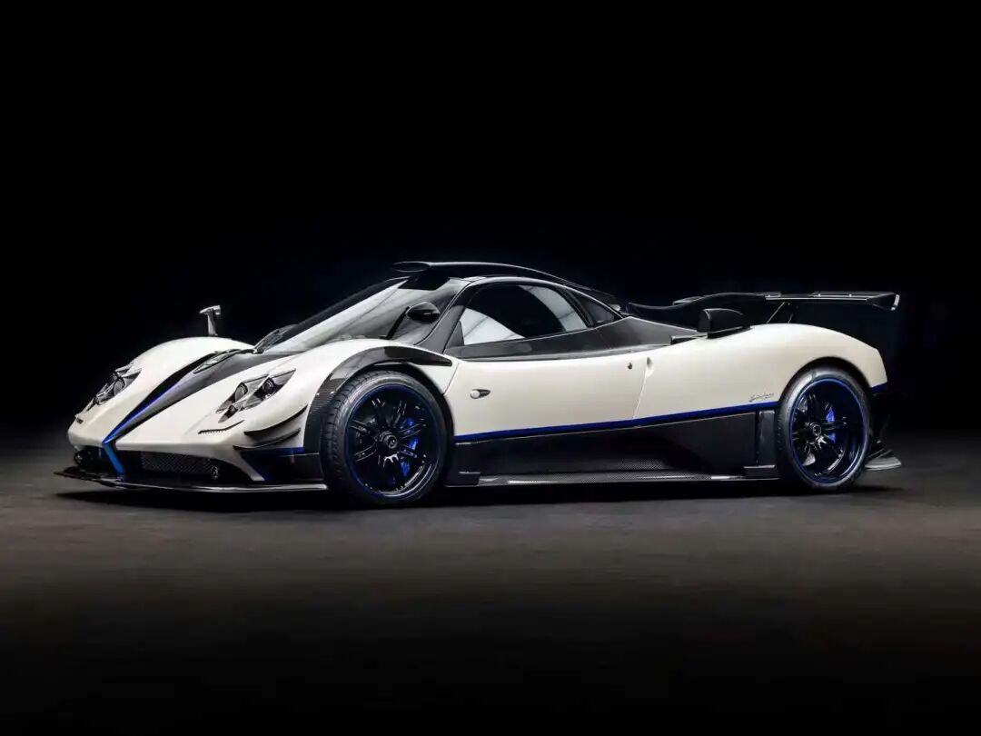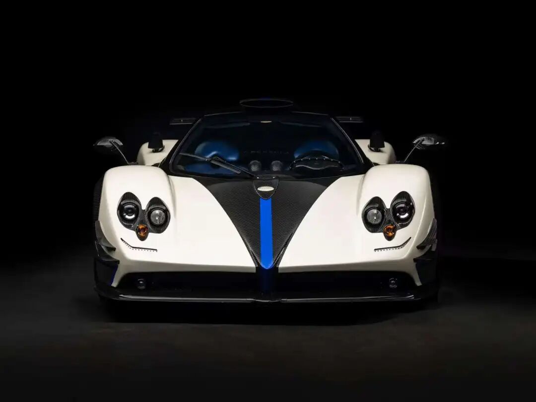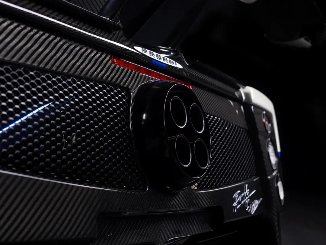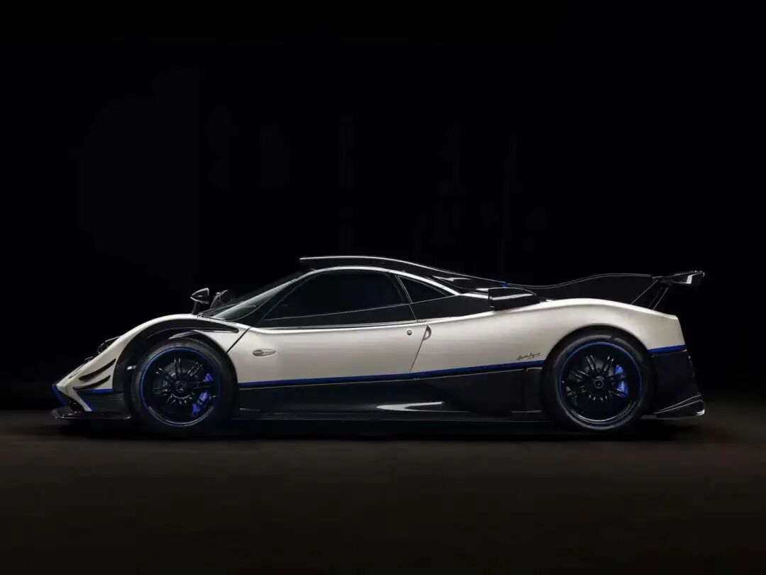那么它特别在哪里?首先,外观与其他任何Zonda都不同。车身采用金属白涂装,引擎盖、车顶进气口、车门和后保险杠点缀着皇室蓝装饰。匹配的蓝色刹车卡钳与黑色轮毂上的蓝色饰条相得益彰。