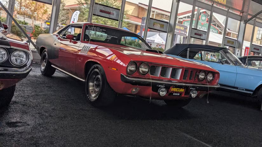 1971年,是普利茅斯'Cuda的“遗憾之年”,也是美式肌肉车黄金时代的落幕前奏。这一代'Cuda带着极具争议的设计登场——激进的“刨丝器”格栅搭配四圆灯前脸,勾勒出獠牙毕露的凶狠姿态,与“梭子鱼”的名号完美契合,却在当时被主流审美诟病“太激进、太丑陋”,成为车评界的众矢之的。彼时的美国,正站在石油危机的前夜,大排量肌肉车早已开始遇冷,再加上'Cuda售价高昂、保险费用畸高,其销量遭遇断崖式下滑:1971年普利茅斯Barracuda全系仅售约1.7万台,其中性能版'Cuda仅6000台,而Hemi敞篷版,仅量产12台,成为时代背景下的极致孤品。