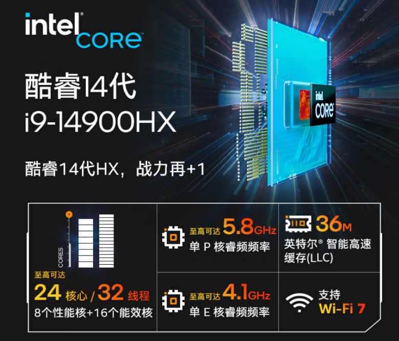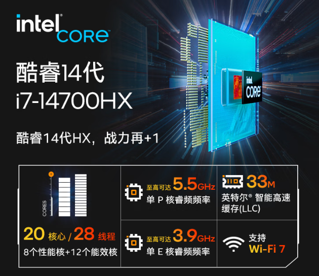 虽然说I7-13620HX属于十三代酷睿,但本质而已和十四代相距不远。同样能够给游戏玩家乃至专业用户强力的运算性能。毕竟也是10 核 16 线程设计(6 性能核 + 4 能效核),性能核睿频达 4.9GHz,能效核睿频 3.6GHz,搭配 24MB 三级缓存,基础功耗 45W,最大睿频功耗 115W。