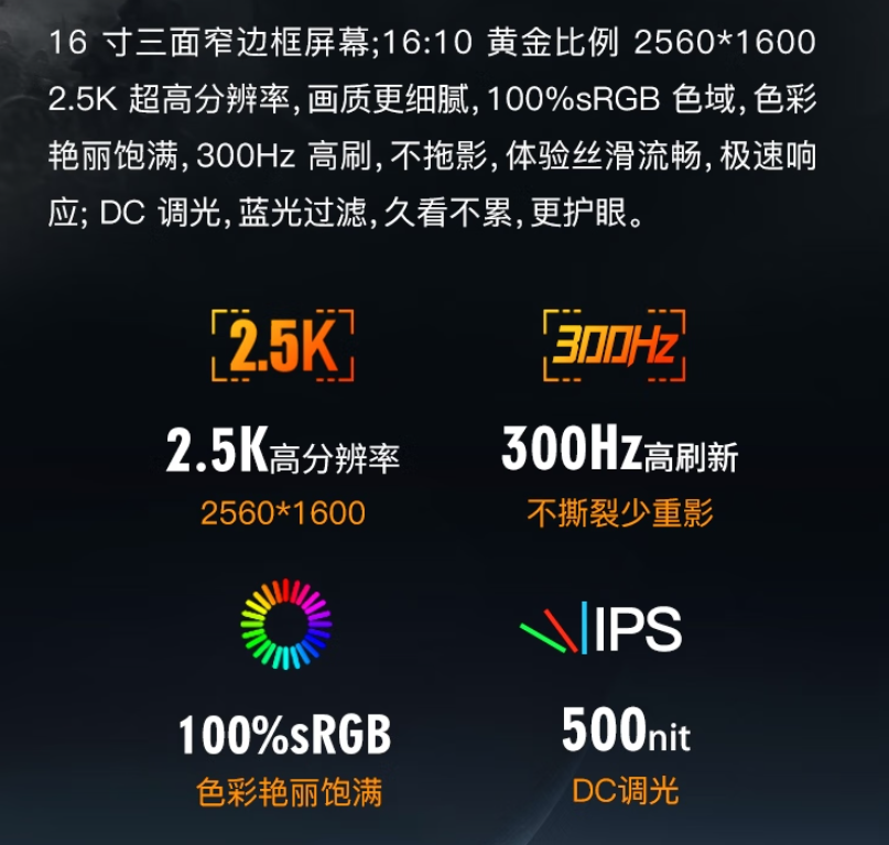 因此,神舟(HASEE)战神T12 Pro选用的2.5K超高分辨率、500nit亮度屏幕就显得非常有需要。而且还有300Hz高刷新率,对于追求极限电竞游戏体验的朋友来说,足够释放全部手速与天赋。