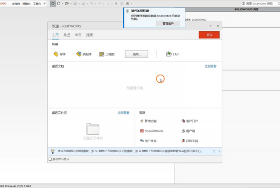 5、完成后,重新打开SolidWorks,即可正常启动使用。
