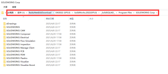 I:\BaiduNetdiskDownload\SW2022(SP5.0)\SolidWorks.2022(SP5.0)\_SolidSQUAD_\Program Files\SOLIDWORKS Corp。