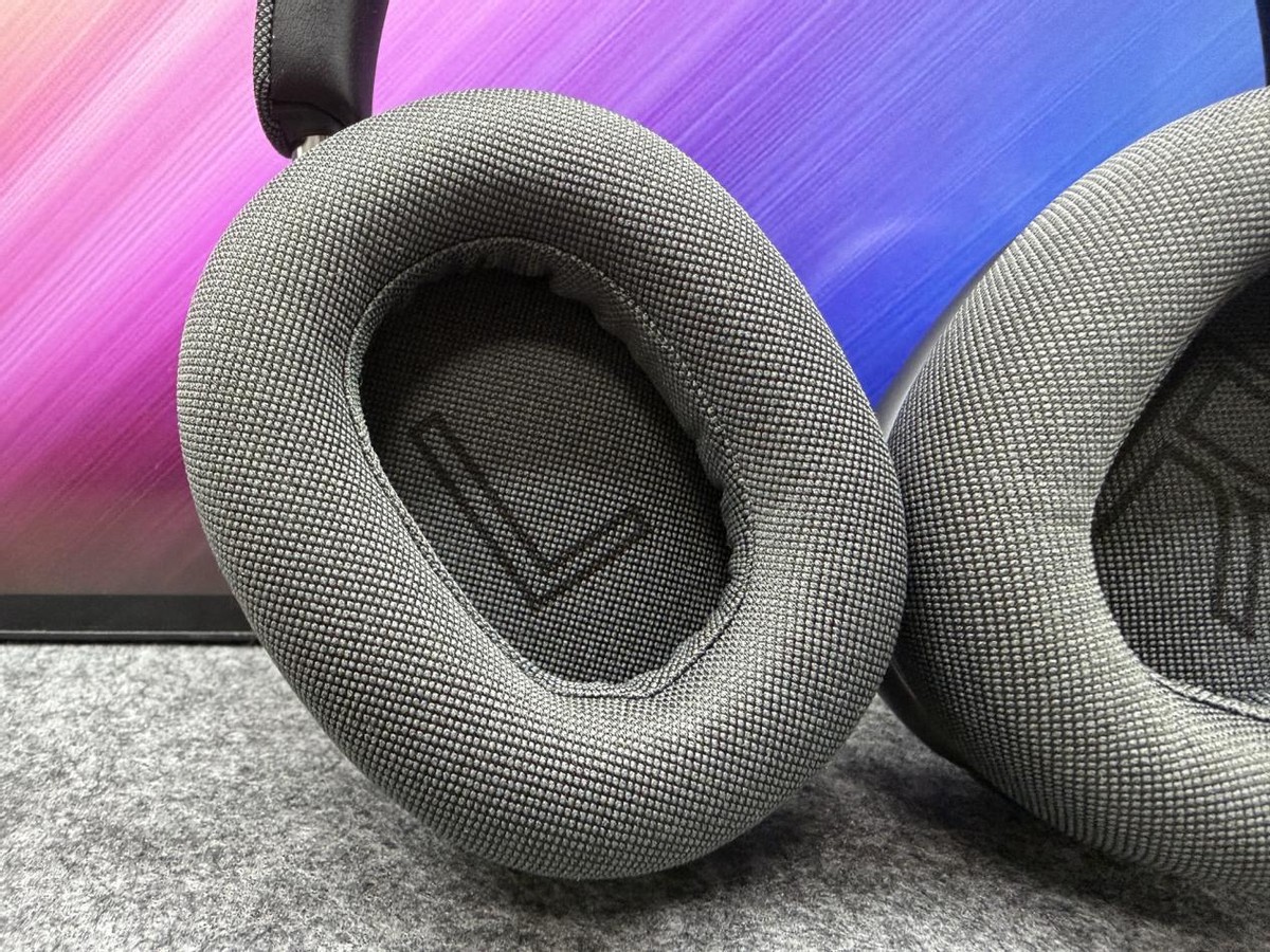 耳机罩和外侧采用布料材质, 这也是很少见的设计元素。耳机罩内侧有硕大的L/R标识,方便快速识别。