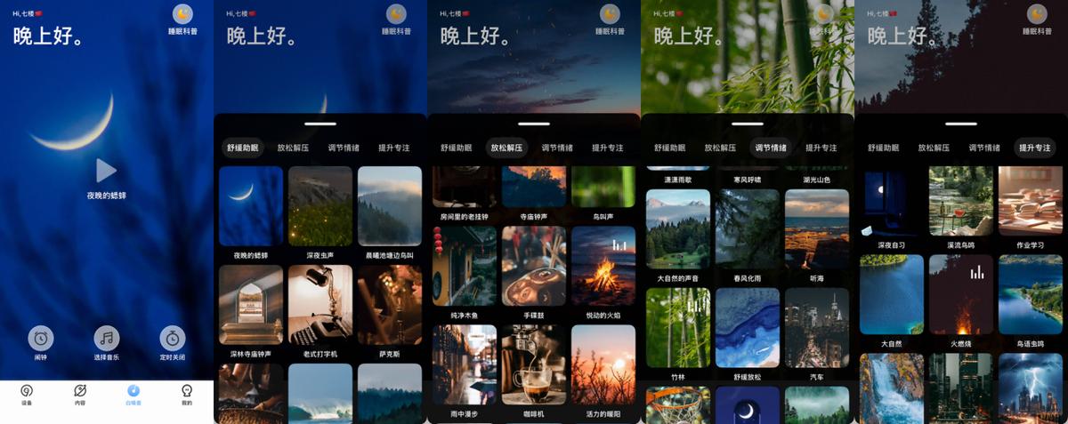 iKF Mars的白噪音功能也非常好用,提供了舒缓助眠、放松解压、调节情绪、提升专注等四大类型,几十种不同的白噪音,可以有效放松身心,调整情绪。中午休息的时候调整好关机时间带上耳机,沉浸在舒缓的音乐里睡上美美一觉,下午又满血复活,效率倍增。个人非常喜欢这个功能,强烈建议大家有机会要试一下,真的很解压。