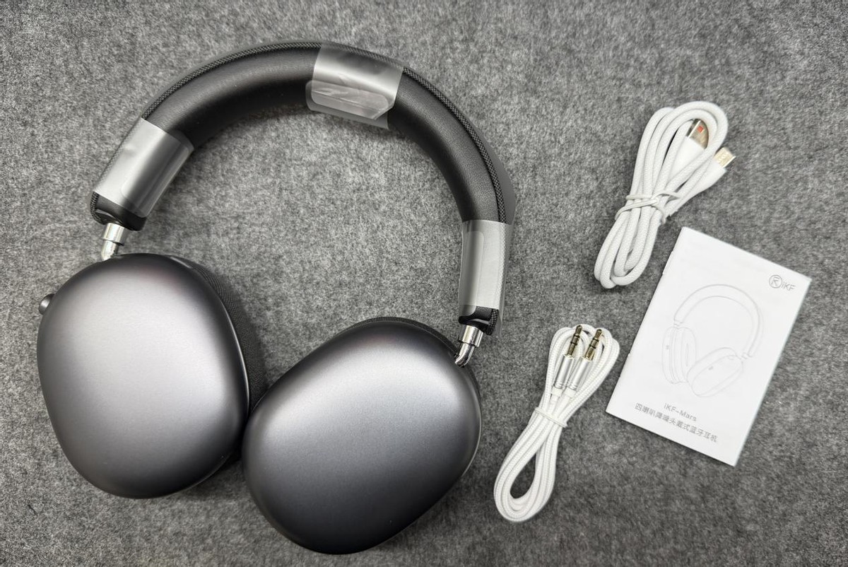 耳机本体、一根双3.5音频线、一个USB-A转C数据线兼充电线和一本多语言说明书。iKF Mars 有星光白、雅典灰和远峰蓝多个配色。楼主这款是雅典灰,灰色和黑色撞色设计加上金属支臂,高级感拉满。