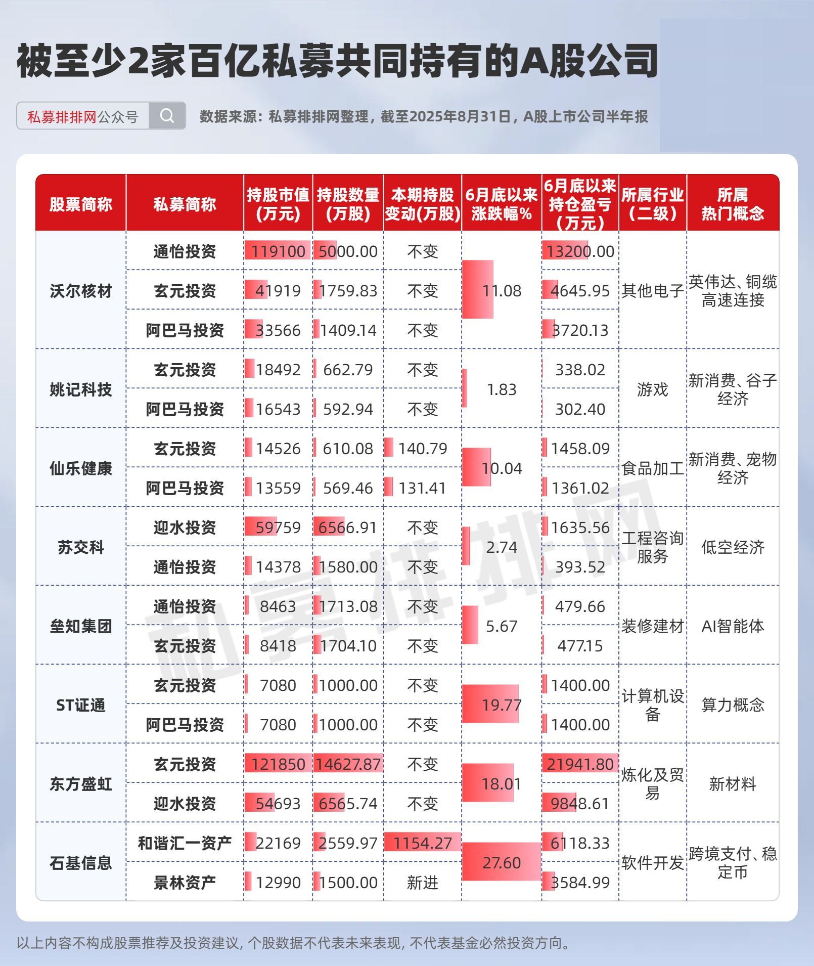 从持股数量来看,共有8家公司被至少2家私募共同持有,其中仅有英伟达产业链的沃尔核材同时被3家私募共同持有。