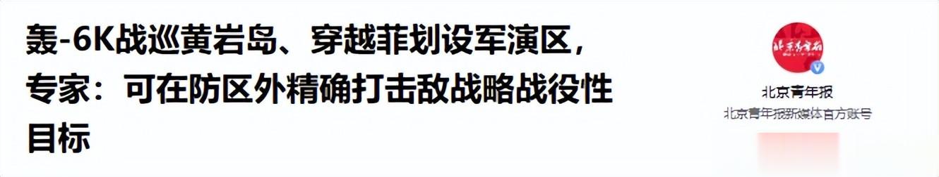 北京青年报——轰-6K战巡黄岩岛、穿越菲划设军演区,专家:可在防区外精确打击敌战略战役性目标