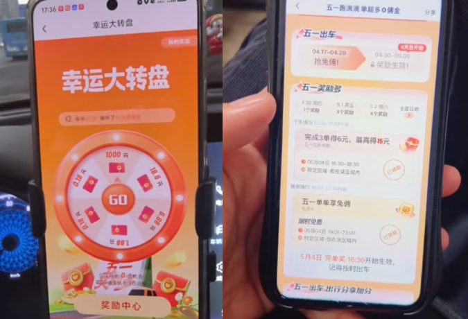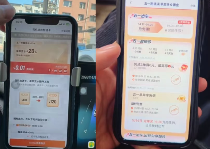 多地滴滴司机反映,今年滴滴奖励多,活动丰富。据了解,平台发放近4亿元司机补贴,推出了免佣卡、流水加速卡、完单奖、节日无忧宝和大转盘抽最高1000元现金红包等多重奖励活动,让坚守岗位的师傅们在五一假期劳有所获,收入更多。