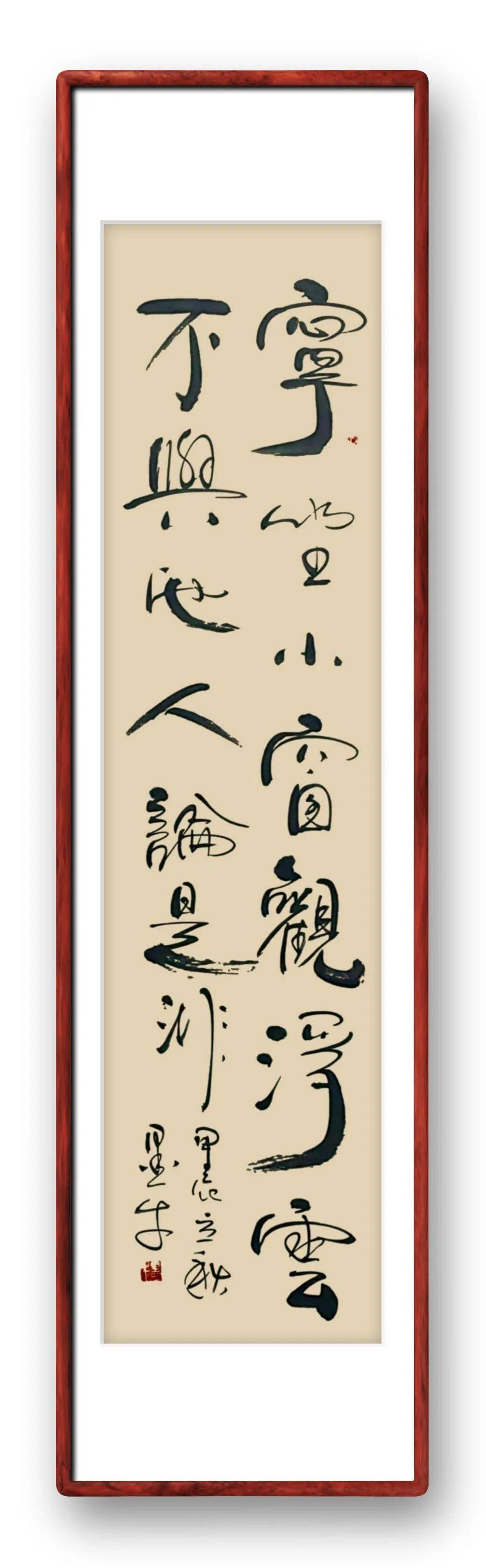草书的灵魂在于情感的肆意挥洒。先生笔下,每一笔墨都是情感的符号。那些大起大落的线条,如激昂的旋律,或如暴风骤雨般倾泻,或似潺潺溪流般舒缓,将创作时的心境毫无保留地呈现。笔画的粗细对比、字势的欹正相生,是内心情绪起伏的外化——当笔锋凌厉扫过,是激情的迸发;当线条婉转徘徊,是思绪的沉吟。这种情感并非无序的宣泄,而是在传统笔法框架内的畅意表达,让观者透过墨色浓淡、线条疾徐,触摸到书者彼时的喜怒哀乐,实现了书法作为“心画”的情感传递功能,使古老的草书成为连接创作者与欣赏者心灵的桥梁。