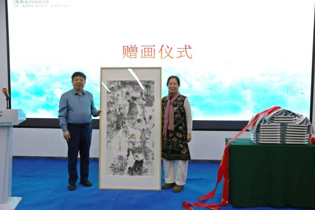 活动现场,陈梅贞向胥口镇赠送书画作品。