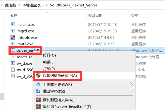 2、在文件夹里找到【server_install】文件,鼠标右键点击,选择【以管理员身份运行】。