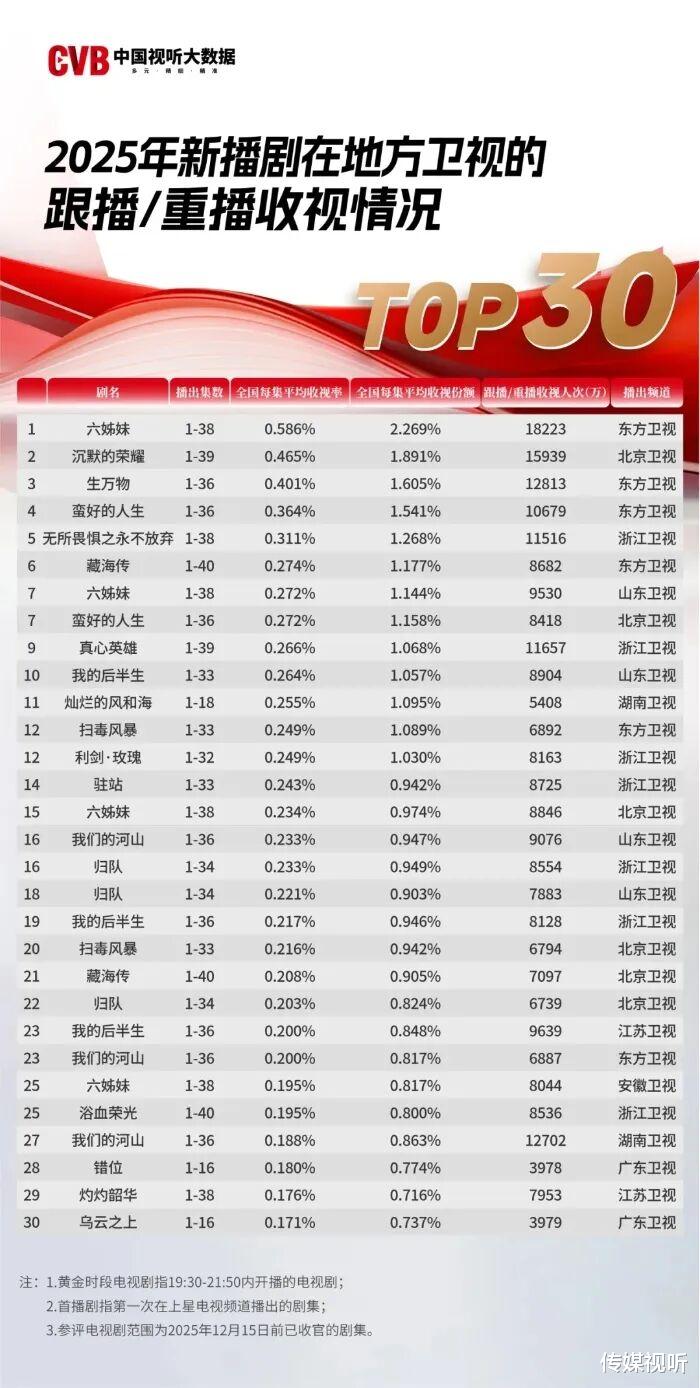 真正的精品,其价值绝不限于首播的“爆响”。2025年的数据显示,《六姊妹》《沉默的荣耀》《生万物》等剧在总台首播大获成功后,在省级卫视的重播依然能跻身收视榜单前列,甚至登上回看规模榜首。