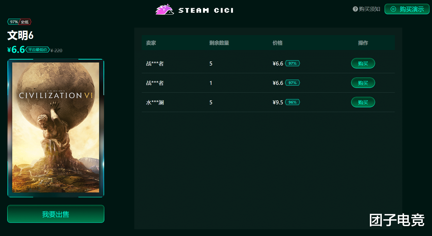 可以看到原价220的《文明6》,现在在steamcici上只需要6.6即可拿下,四舍五入相当于白送。