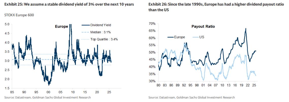 综上所述,高盛预测股东总收益率约为每年3.5%。这一稳定且可观的贡献凸显了分红政策作为欧洲股票回报结构性组成部分的重要性。