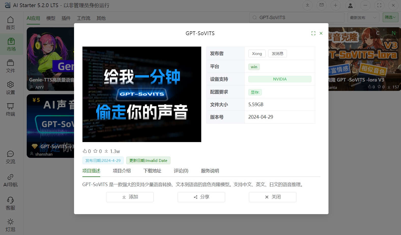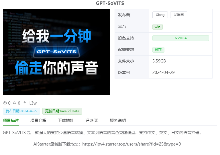 想体验极致的 AI 配音吗?GPT-SoVITS 整合项目现已支持在 AIStarter 平台上一键部署。