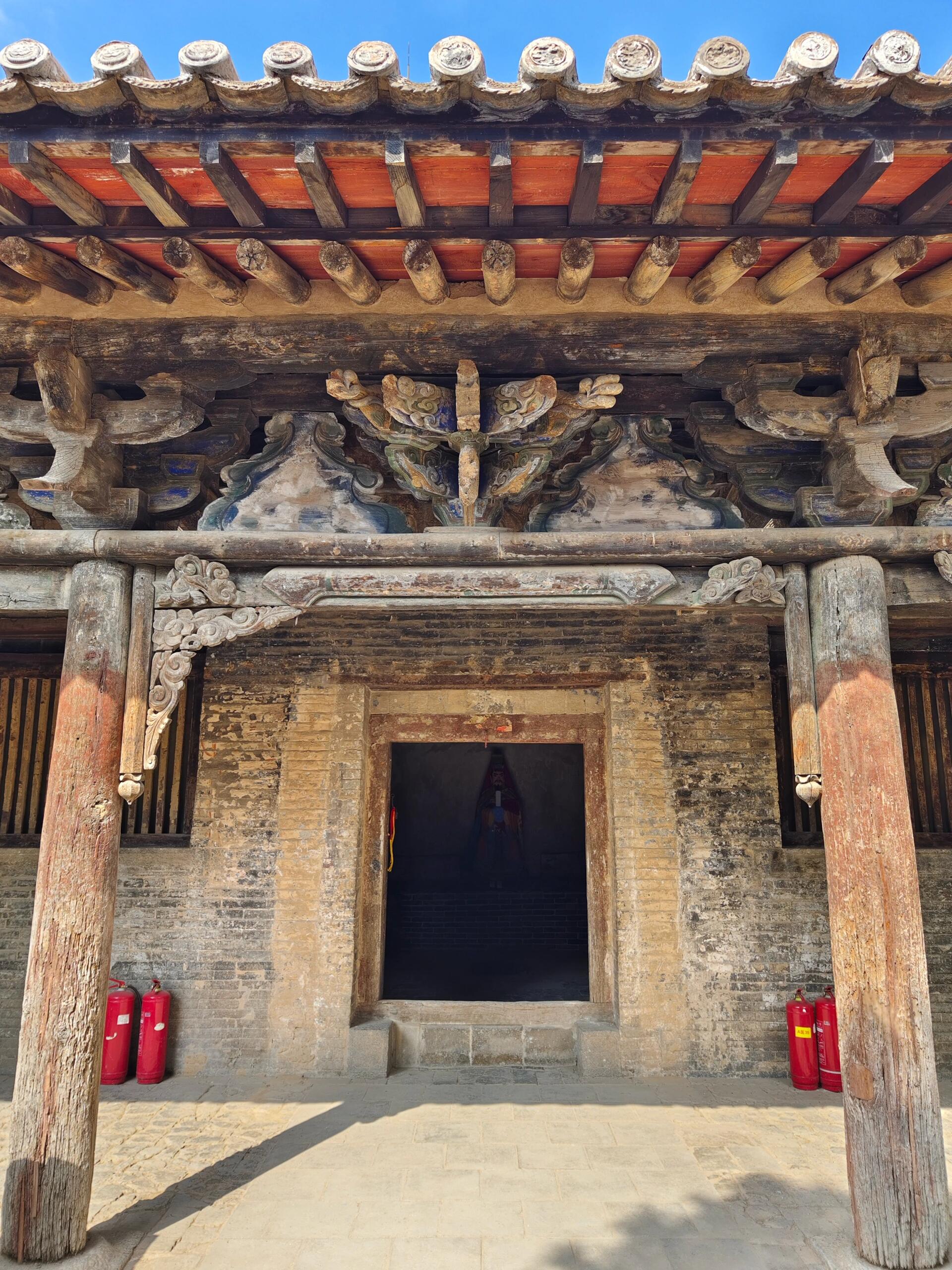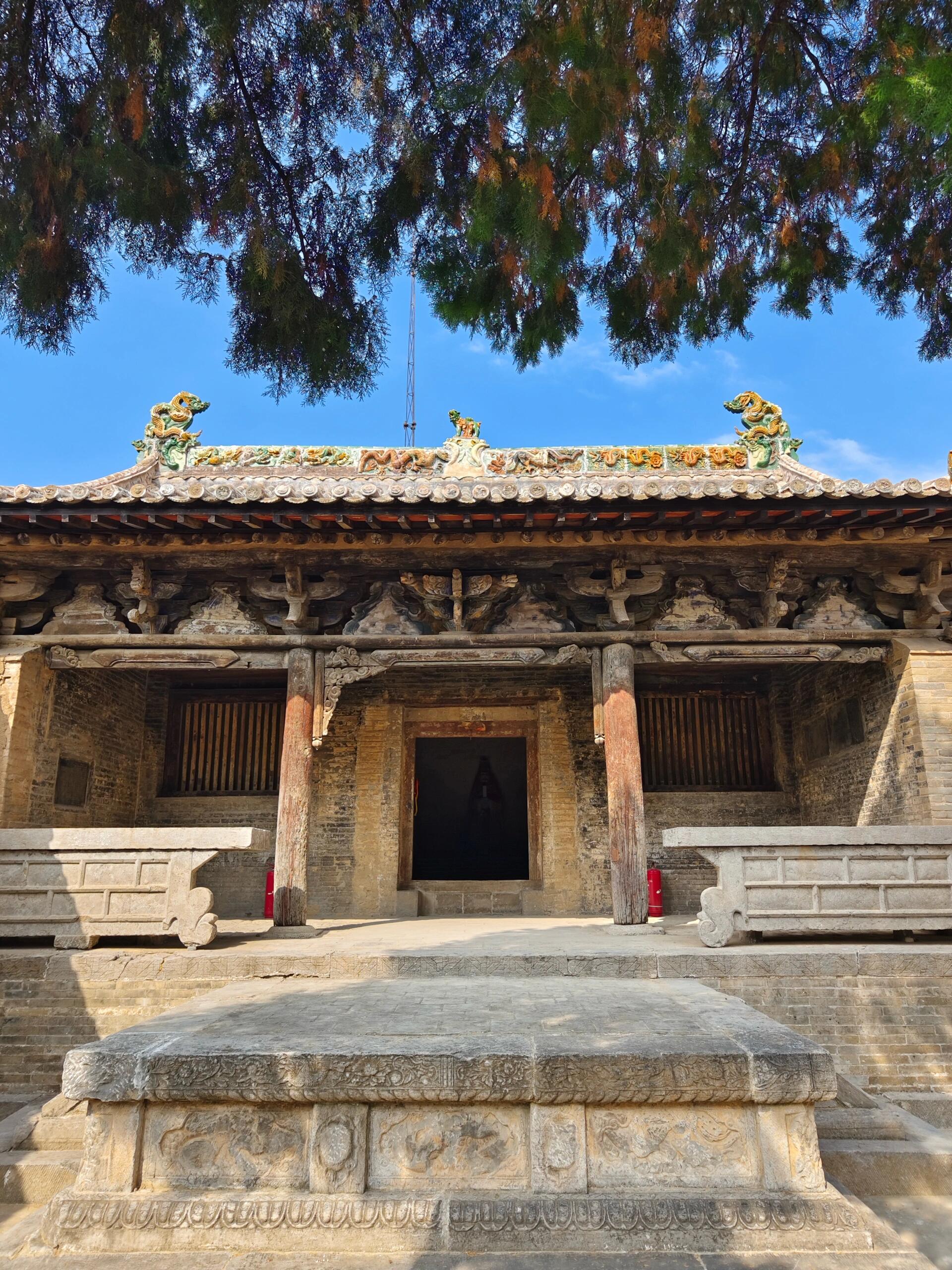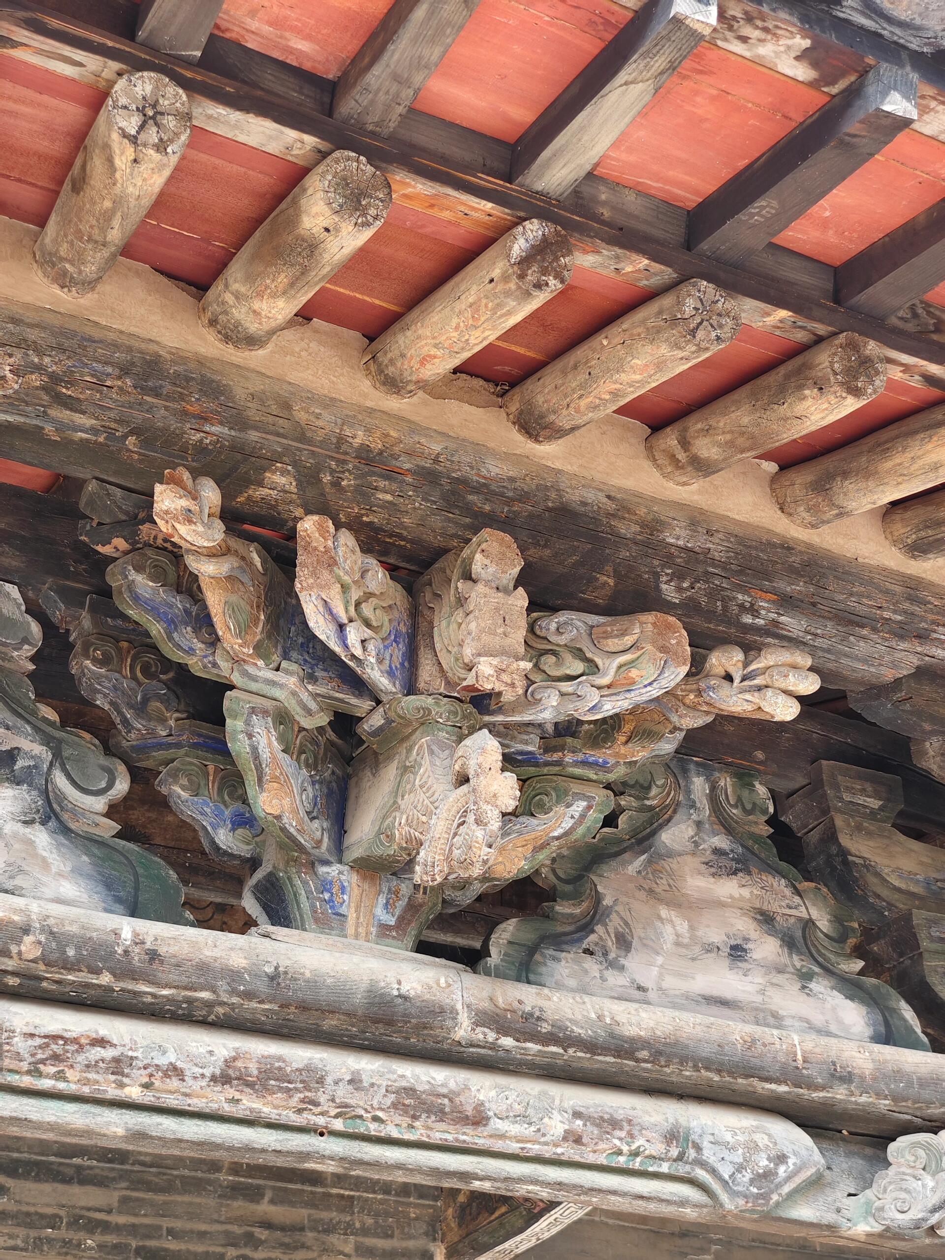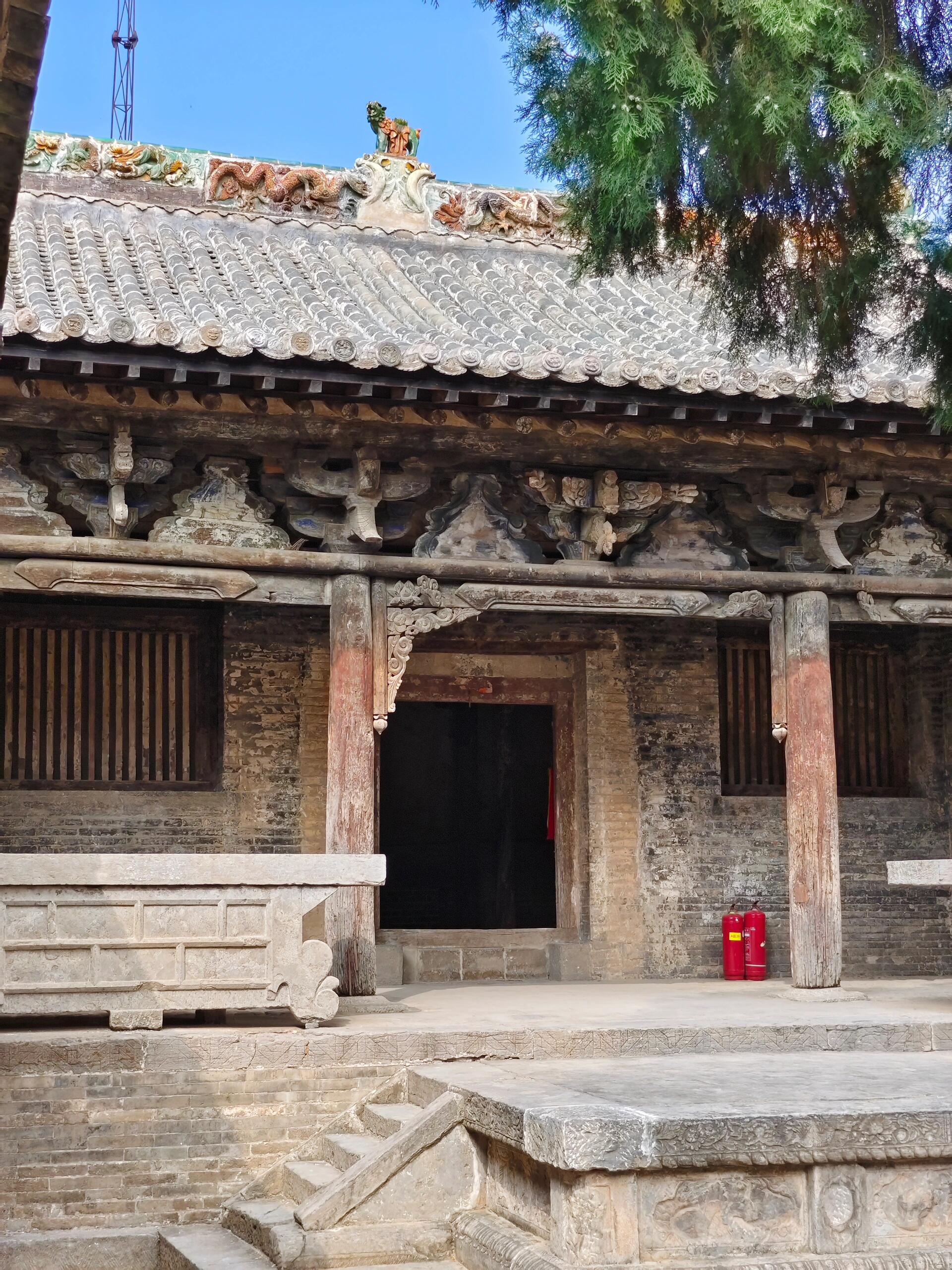穿过山门,眼前豁然开朗,一方月台连接着正殿。月台由青石砌成,边缘的望柱上雕刻着简单的云纹,虽不算精致,却也古朴耐看。正殿作为神祠的核心建筑,是元代遗构。面阔三间、进深六椽的规模不算宏大,但粗壮的檐柱、厚重的梁架,无不透着元代建筑特有的雄浑大气。站在殿前,能明显感受到一种沉稳的力量感,仿佛这些历经数百年风雨的木构件,仍在默默坚守着自己的职责。