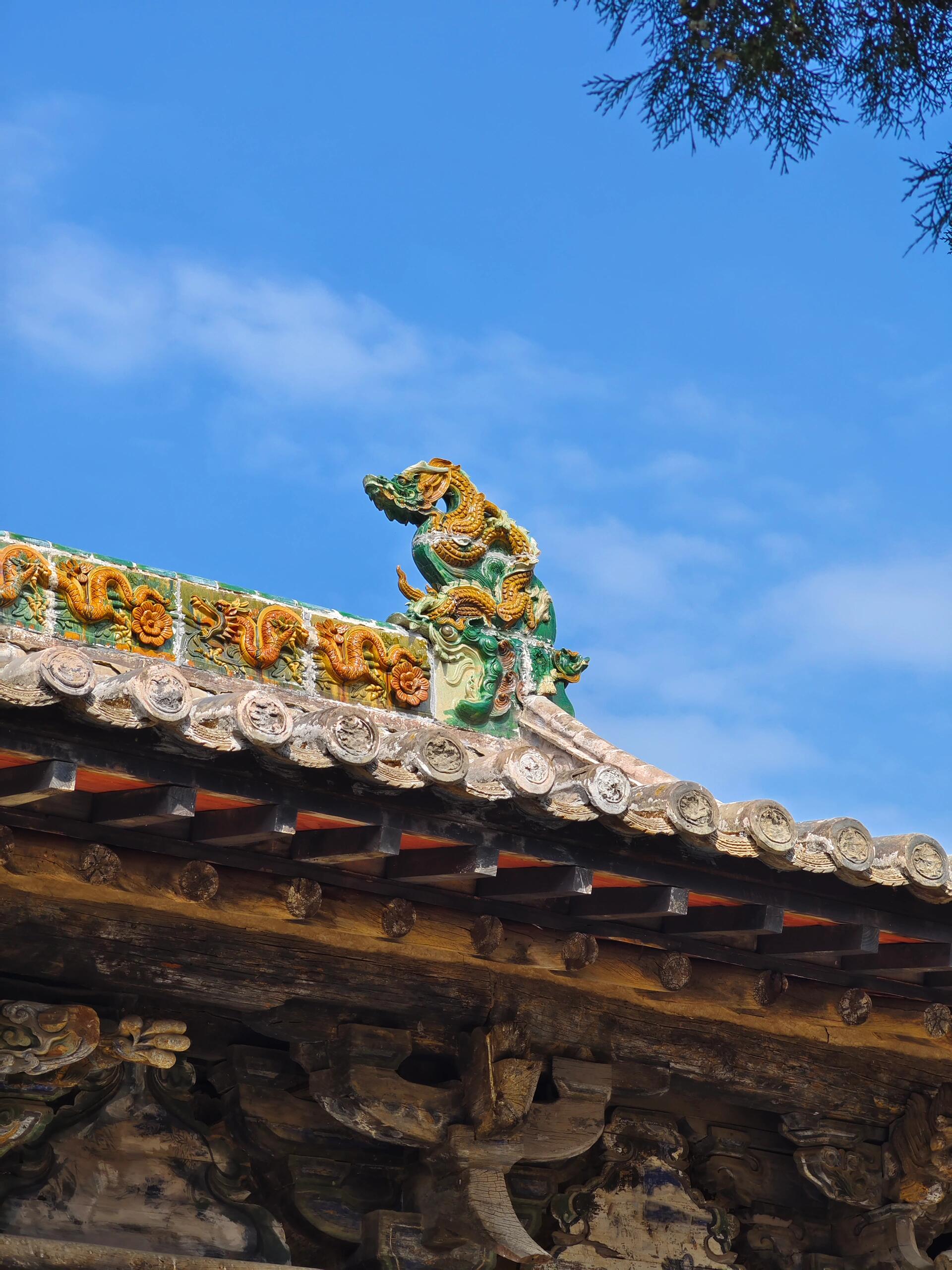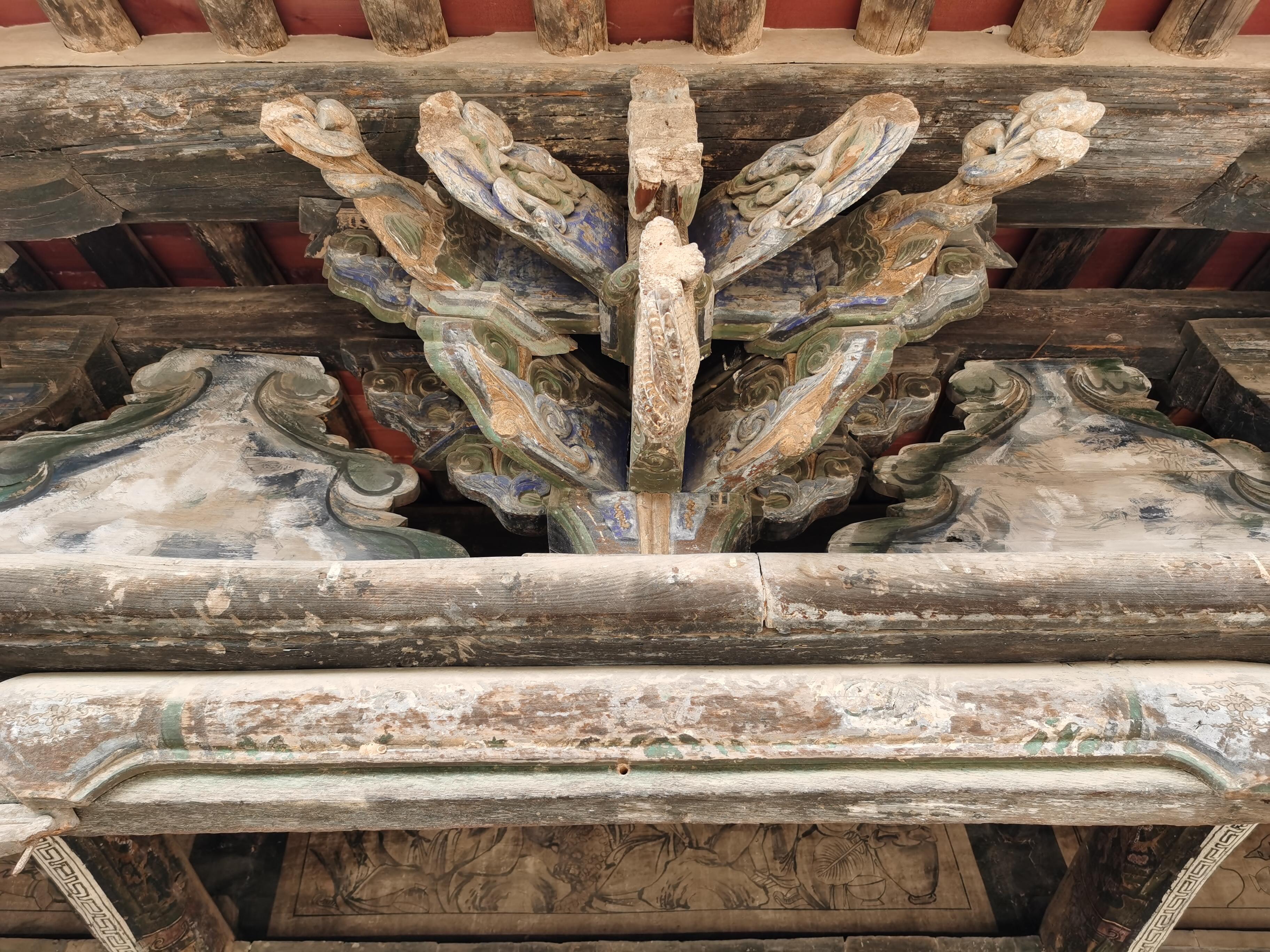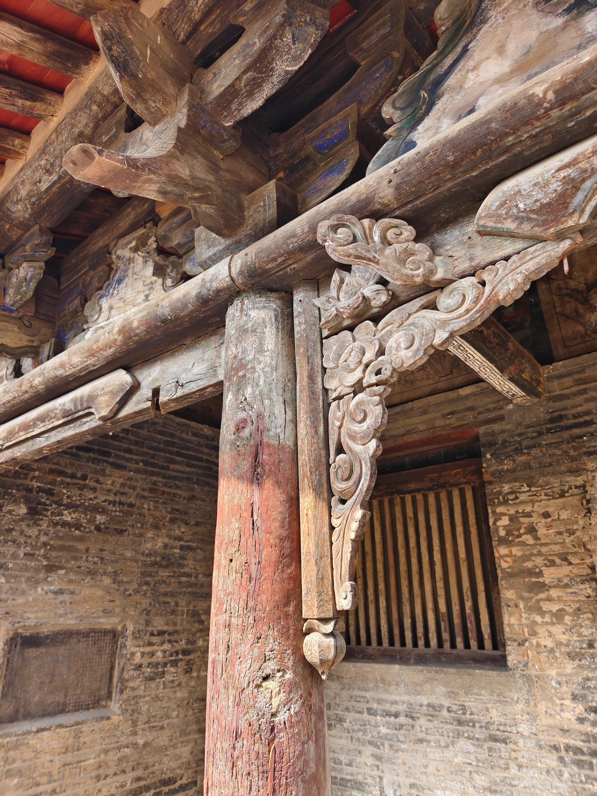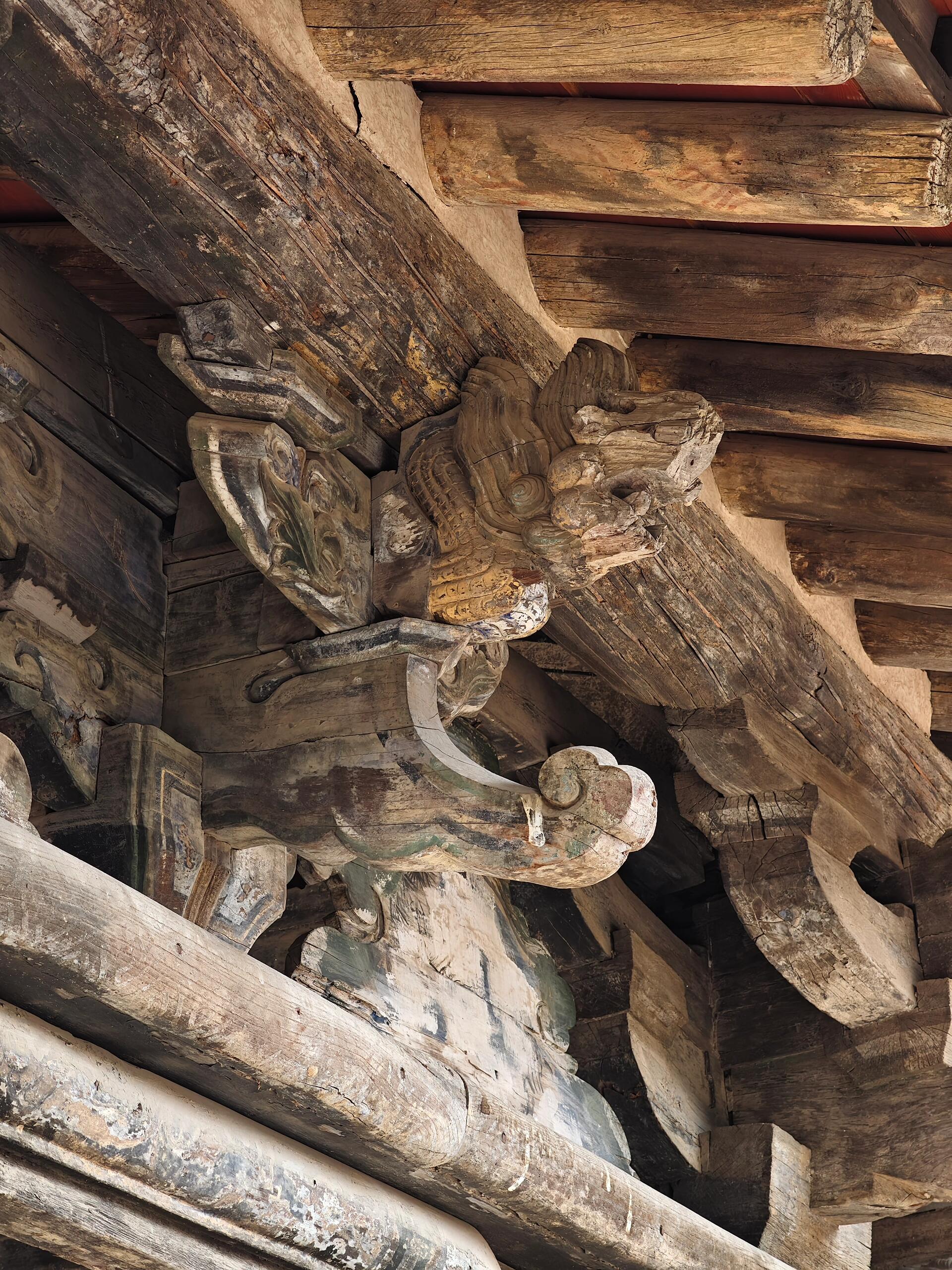 穿过山门,眼前豁然开朗,一方月台连接着正殿。月台由青石砌成,边缘的望柱上雕刻着简单的云纹,虽不算精致,却也古朴耐看。正殿作为神祠的核心建筑,是元代遗构。面阔三间、进深六椽的规模不算宏大,但粗壮的檐柱、厚重的梁架,无不透着元代建筑特有的雄浑大气。站在殿前,能明显感受到一种沉稳的力量感,仿佛这些历经数百年风雨的木构件,仍在默默坚守着自己的职责。