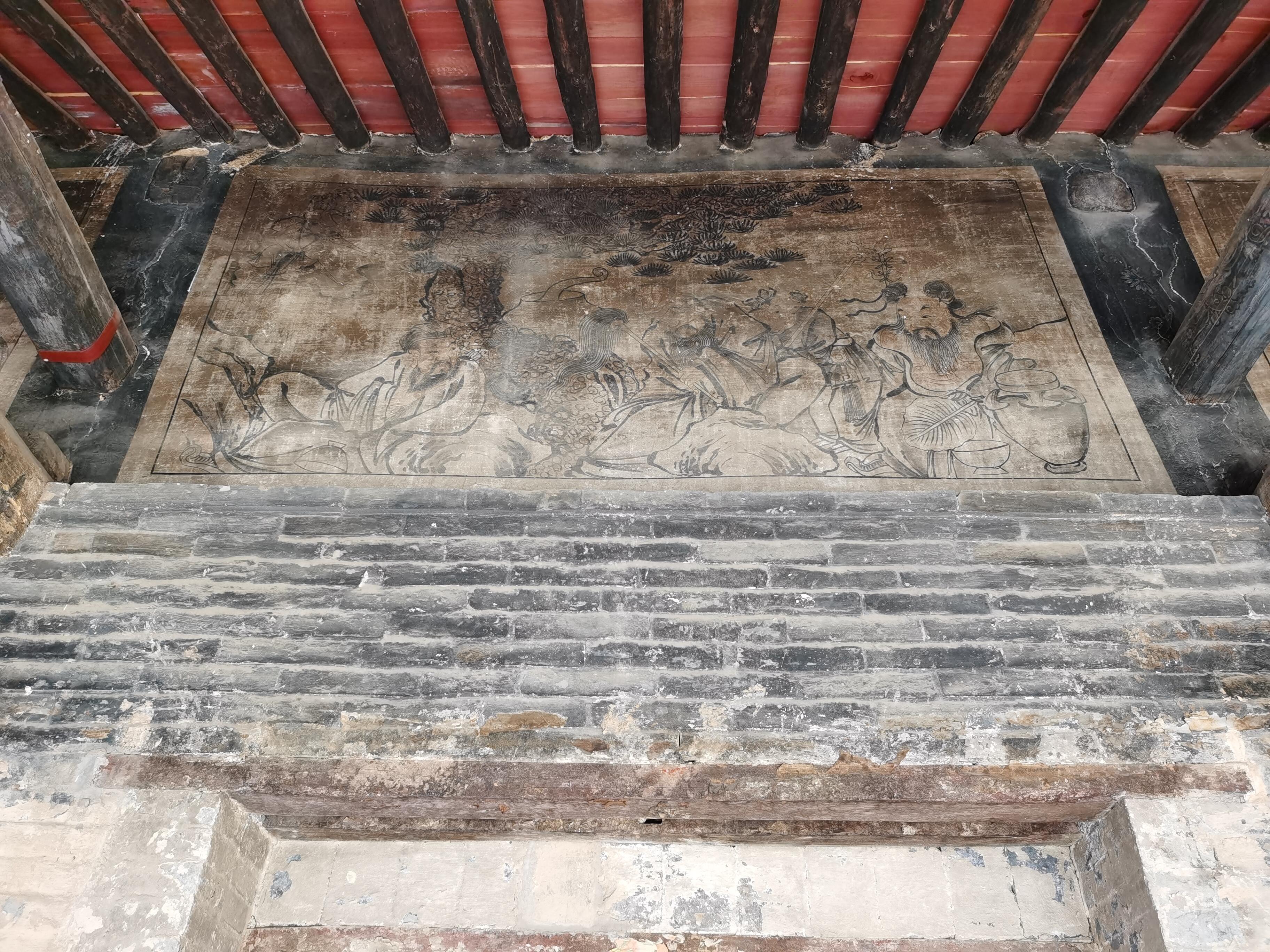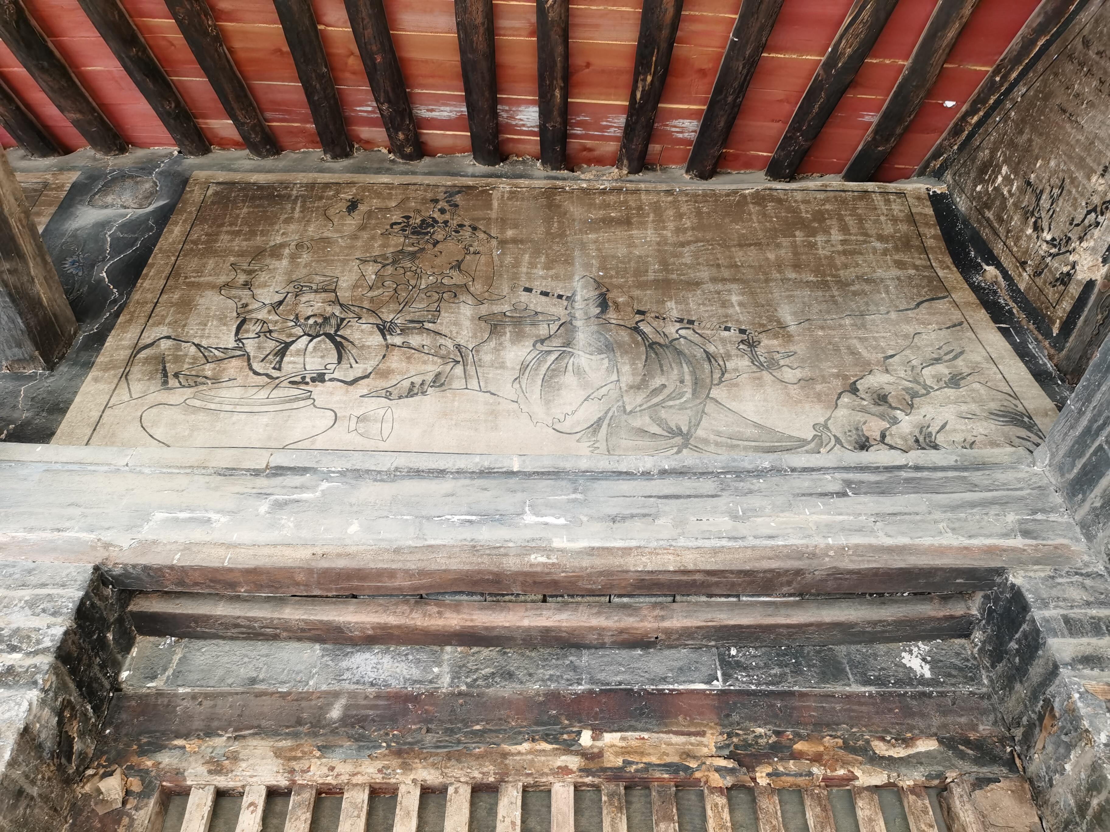 走进正殿,光线略显昏暗,待眼睛适应后,便被墙壁上的壁画吸引。这是明代绘制的八仙故事,采用工笔白描的手法,线条流畅飘逸,寥寥几笔便勾勒出八仙的神态与动作。铁拐李的跛足、吕洞宾的仙风道骨,都在画师的笔下栩栩如生。虽然历经岁月侵蚀,部分壁画已经斑驳脱落,但残存的画面依然能让人领略到明代民间绘画的高超技艺。壁画上的每一根线条,都像是穿越时空的信使,向后人讲述着几百年前工匠们的精湛手艺。