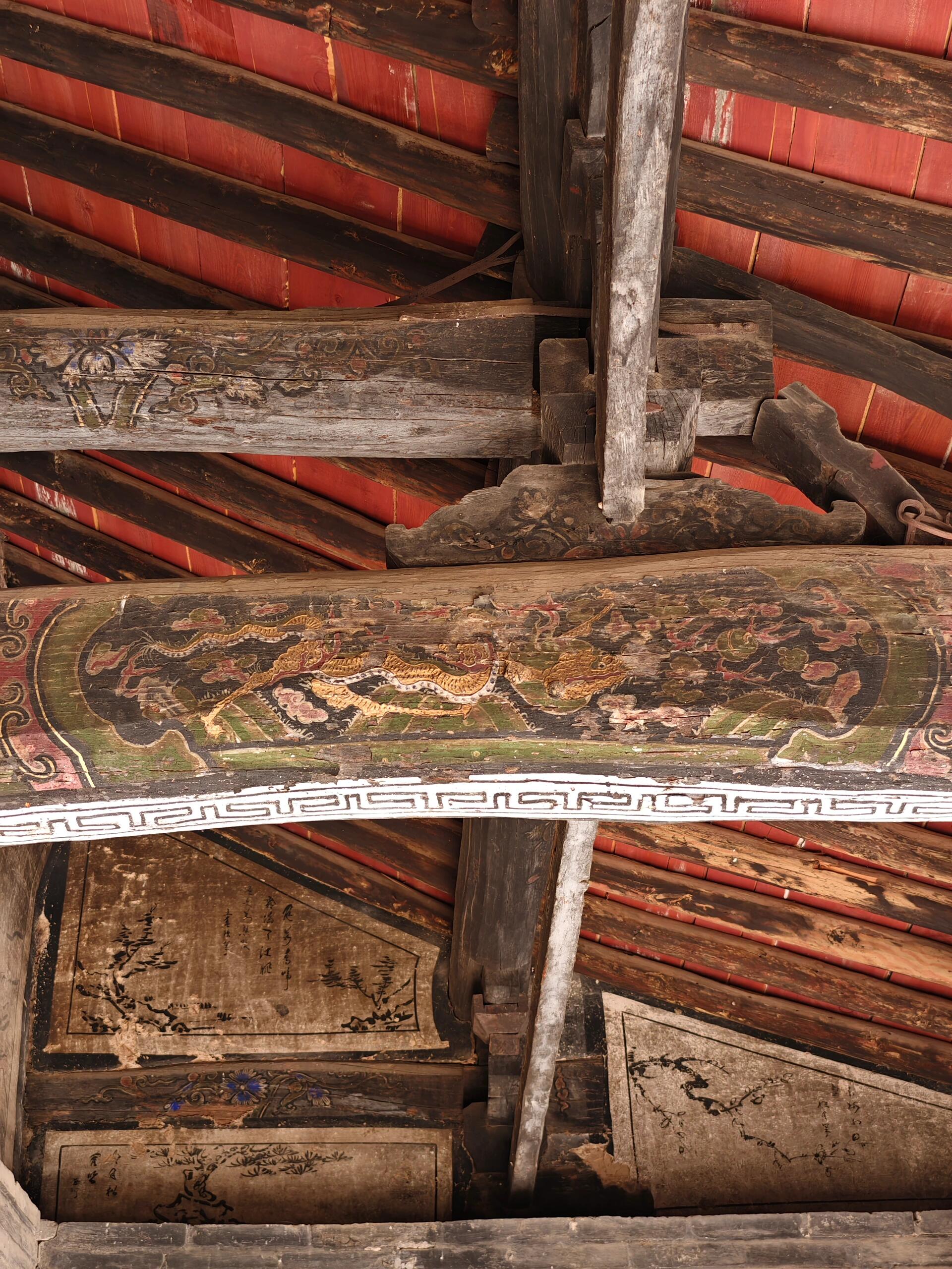神祠内的梁柱上,还留存着一些后人修缮时留下的题记。字迹或工整或潦草,记录着不同年代修缮的时间与缘由。这些文字如同零散的拼图,拼凑出神祠漫长的历史。有的地方梁柱表面已经开裂,却依然坚挺;有些斗拱上的彩绘早已褪色,却保留着最初的模样。正是这些不完美的细节,让这座建筑显得格外真实,仿佛能触摸到历史的温度。