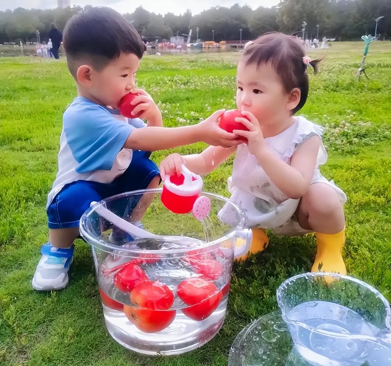 真不用硬推“分享”,1岁半还没进化到“人情世故”阶段,平行着平行着,就瞄上对方小车了,比大人催“你玩这个,小汽车给妹妹”自然一百倍。