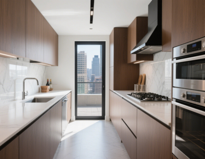 柜体:橱柜柜体一般有实木、多层实木、不锈钢、防火板、防潮板、颗粒板、密度板、铝合金等。